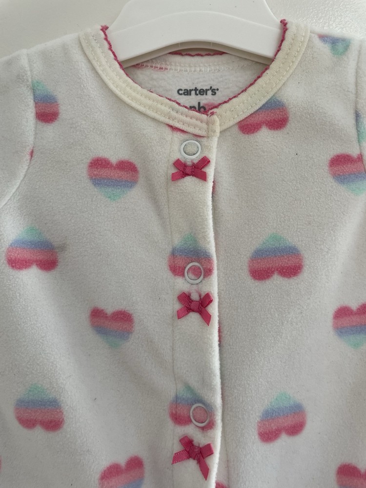 Carter's Baby Girls Rainbow Heart Soft Cozy Fleece Snap-Up Sleep & Play White NB. Condition is pre-owned. Smoke free, pet free home. Shipped via USPS Ground Advantage. In good condition. There are light stains on the front. Free of rips.