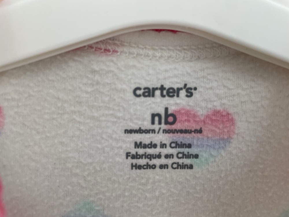 Accents: Bow, Lace Occasion: Casual Sleeve Length: Long Sleeve Country/Region of Manufacture: China Seller Notes: “In good condition. There are light stains on the front. Free of rips.” Brand: Carter's Type: One-Piece Color: White Closure: Snap Style: Sleep & Play Department: Girls Pattern: Hearts Character Family: Rainbow Size: Newborn Garment Care: Machine Washable Number of Pieces: 1 Piece Character: Heart Fabric Type: Fleece Season: Fall, Spring, Summer, Winter Features: Comfort, Easy Care, Lightweight, Stretch Material: 100% Polyester
