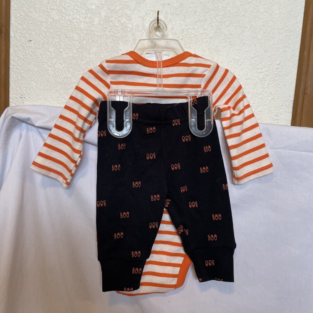 Get ready for Halloween with this adorable Carter's two-piece outfit set! The striped bodysuit features the word "Boo Yah", while the black pants have a snap closure and elastic waistband for comfort. Made from soft and breathable cotton knit fabric, this set is perfect for travel, activewear, parties, or casual occasions. The outfit set is suitable for unisex babies and toddlers aged 3 months and is machine washable for easy care. With its fun Halloween theme, this set will make a great addition to any little one's wardrobe. 2-piece set Infant sizes Bodysuit with snap bottom Pants with elastic waist 100% cotton Made in India