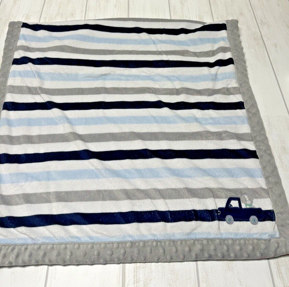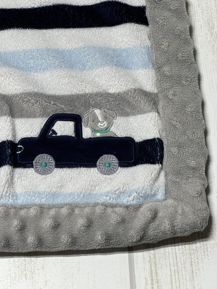 Carters Child Of Mine Grey Blue White Striped Puppy Dog Truck Baby Blanket plush