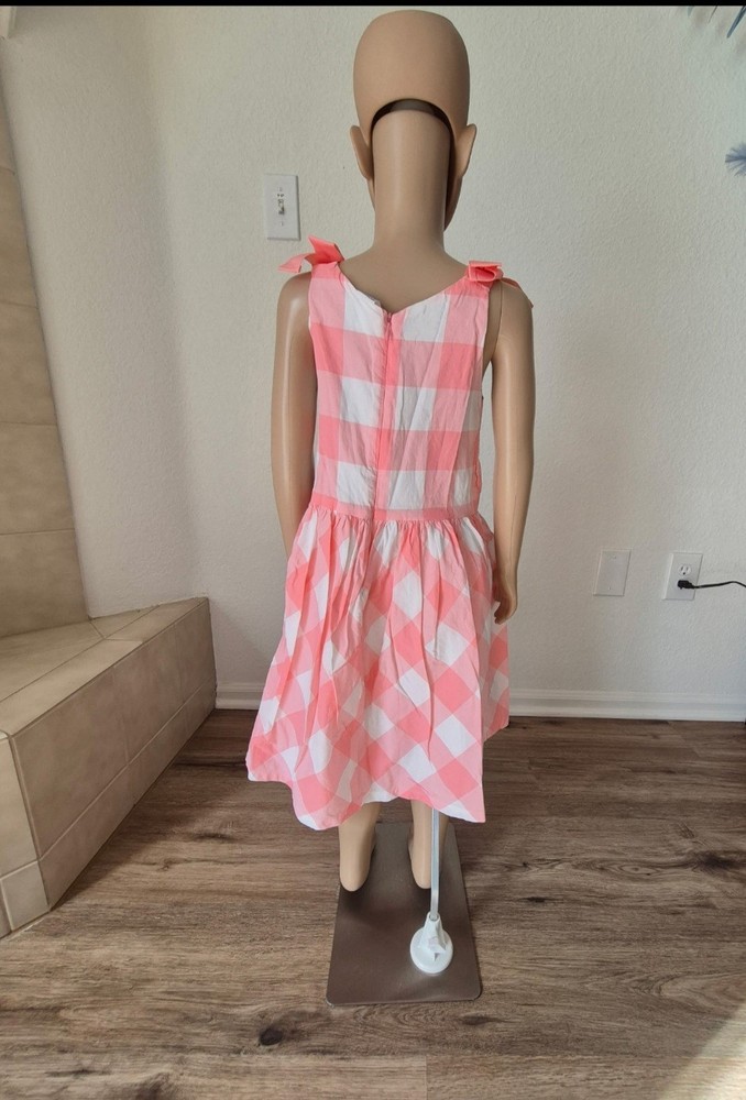 The Carter's Girls Sundress in Pink and White Gingham is a classic and stylish choice for young girls. The sleeveless design with tie shoulders and a square neckline adds a cute and playful touch to the dress. Made from lightweight cotton, this midi-length dress is perfect for casual occasions in the summer and spring seasons. The bow detail at the neckline adds a charming accent to this versatile piece, which is easy to care for with machine washable fabric. Perfect for everyday wear or special events, this Carter's sundress is a must-have for every little girl's wardrobe.