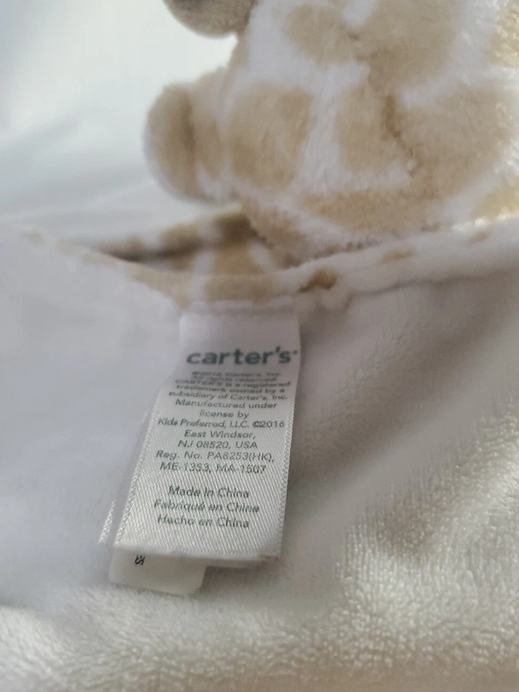 This adorable Carter's Lovey Giraffe is the perfect security blanket for your little one. With its plush stuffed animal design and pacifier holder feature, it's sure to become a favorite companion. The beige, white, and cream color scheme and charming giraffe jungle animal theme make it a great addition to any nursery. Suitable for ages birth and up, this unisex baby blanket is a must-have for new parents. This plush stuffed animal blanket is in excellent condition and will provide your baby with comfort and security. The Carter's Lovey Giraffe is a popular model and comes with no modifications. It's a custom bundle with no additional accessories. This item is perfect for any baby and is a great addition to your plush baby toys collection.