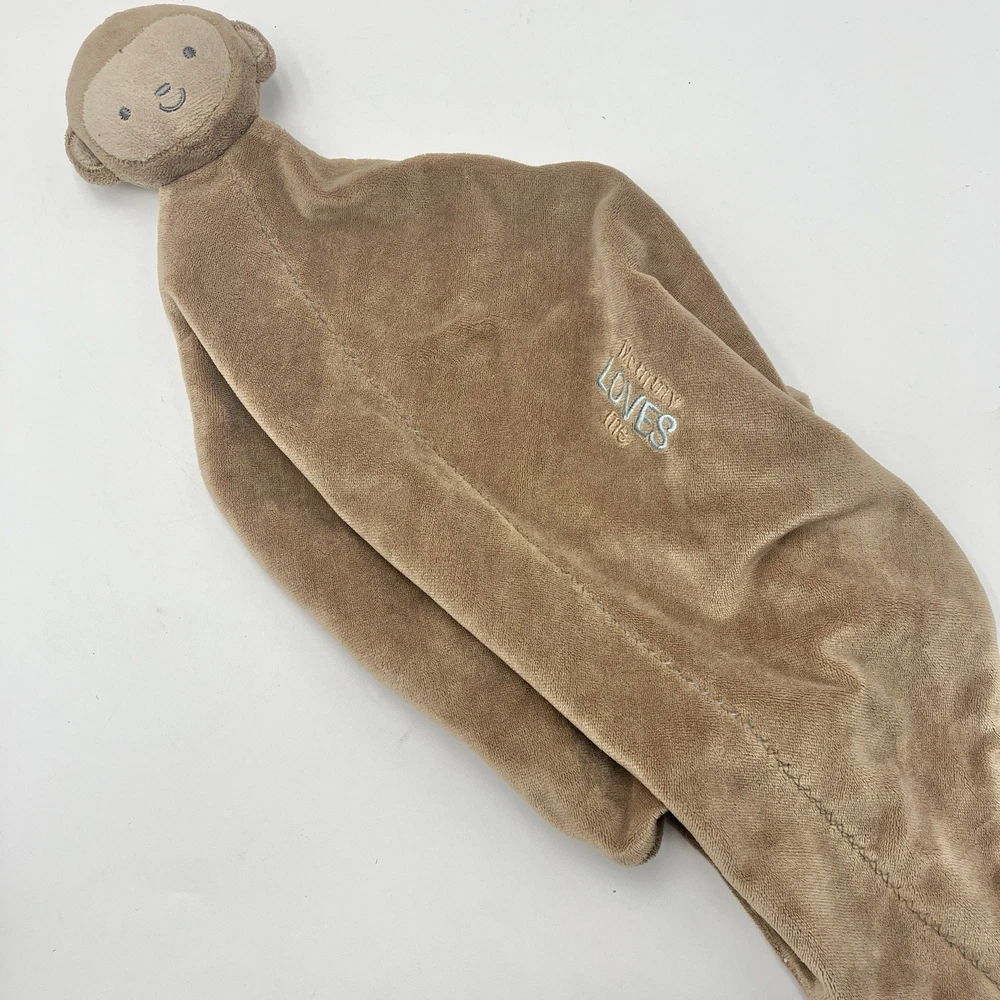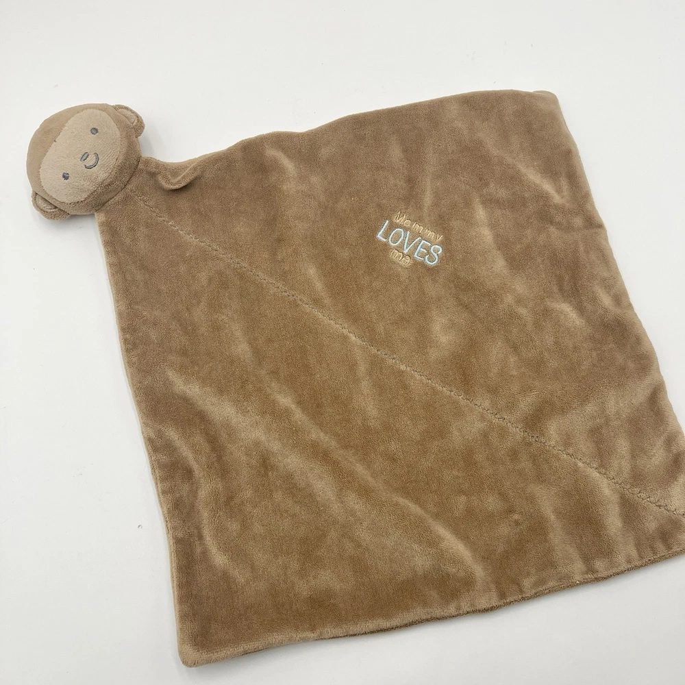 Carter’s monkey lovey / security blanket featuring embroidered “Mommy Loves Me” text. Measures approximately 12 inches square. Soft plush fabric with embroidered facial features. Condition: Very good pre-owned condition. No stains, holes, or odors observed. Tag has been cut — please see photos for details. Perfect as a replacement lovey, comfort item, or nursery plush. Ships carefully packaged from a smoke-free home. Carter’s baby lovey monkey security blanket baby rattle lovey plush security blanket infant comfort toy soft baby blanket toy monkey plush lovey Carter’s lovie blanket nursery comfort item baby shower gift neutral baby toy brown monkey plush baby rattle blanket crib companion toy