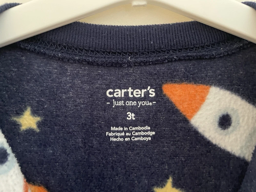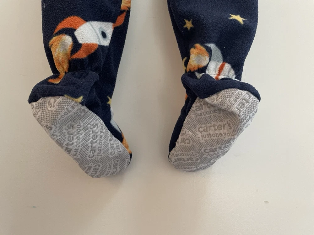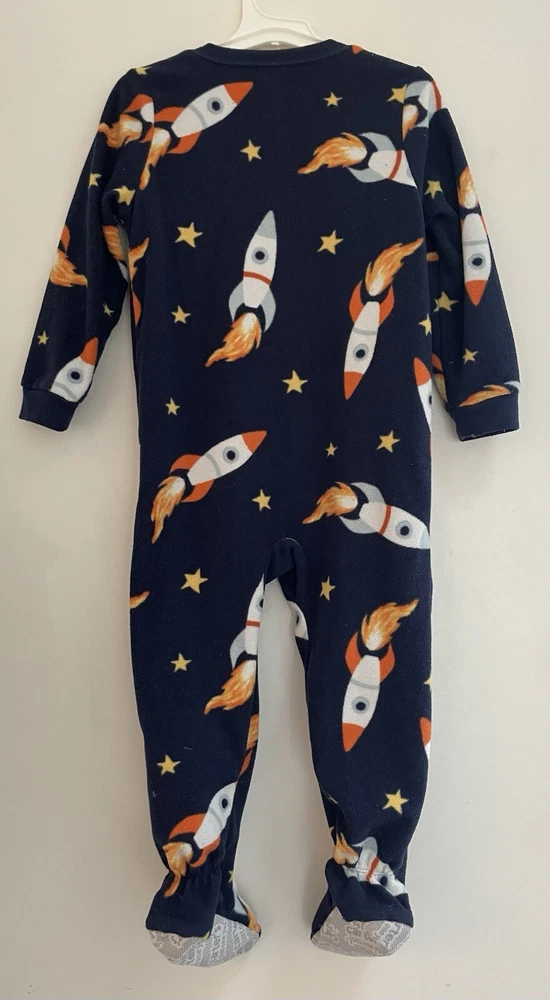 Carter's Toddler Boy 1-Piece Allover Rocket Ships Cozy Fleece Zip-Up PJs Navy 3T. Condition is pre-owned. Smoke free, pet free home. Shipped via USPS Ground Advantage. In very good condition. Free of rips or stains.