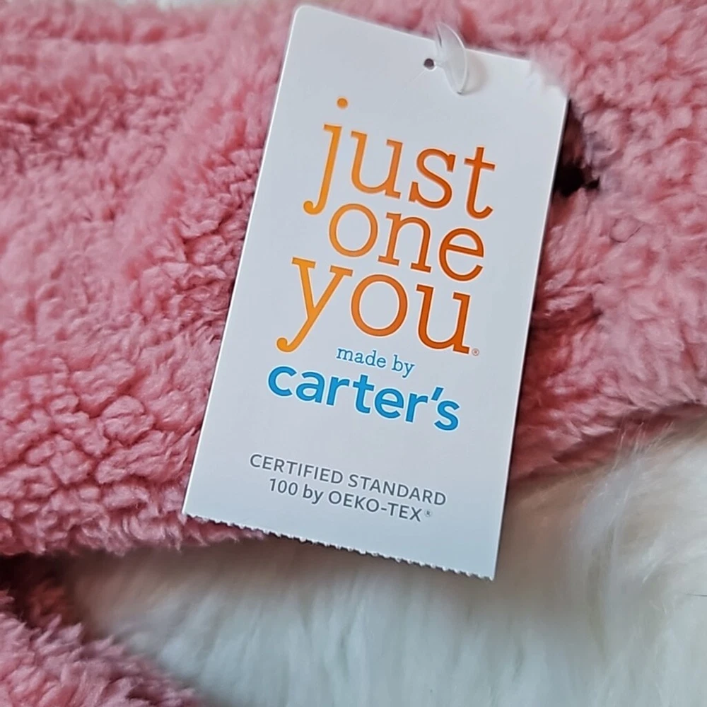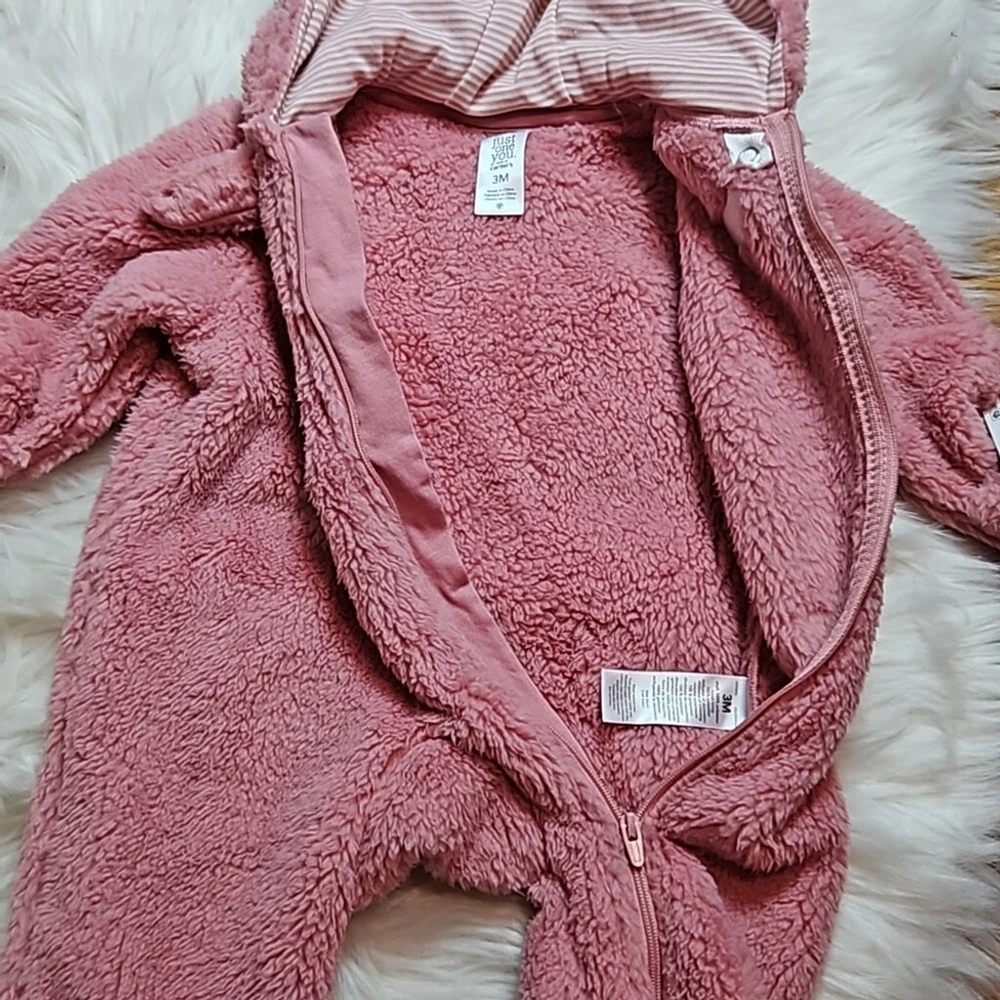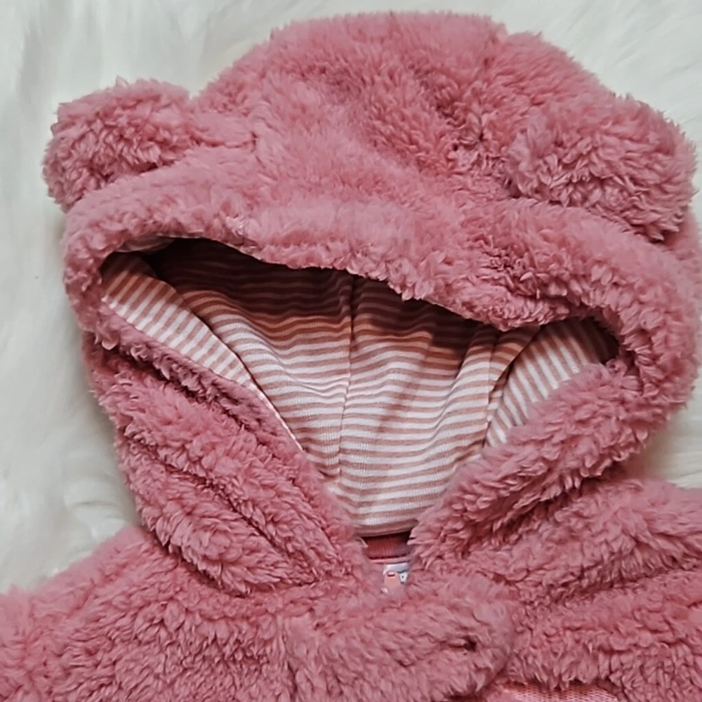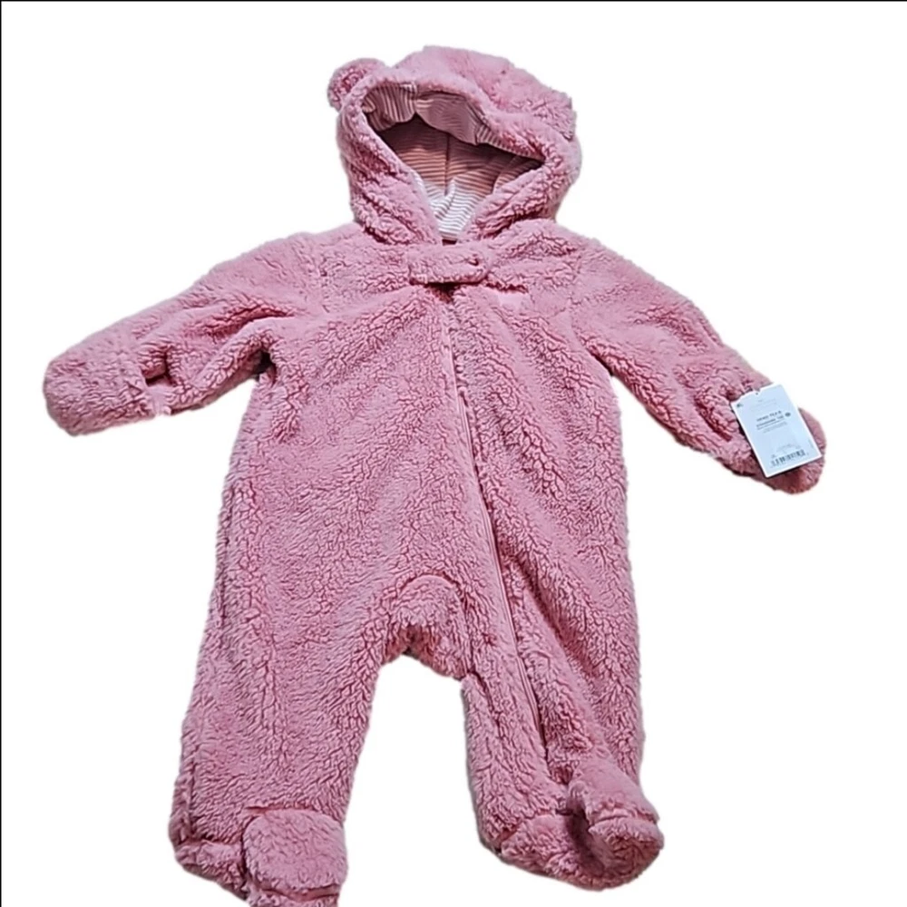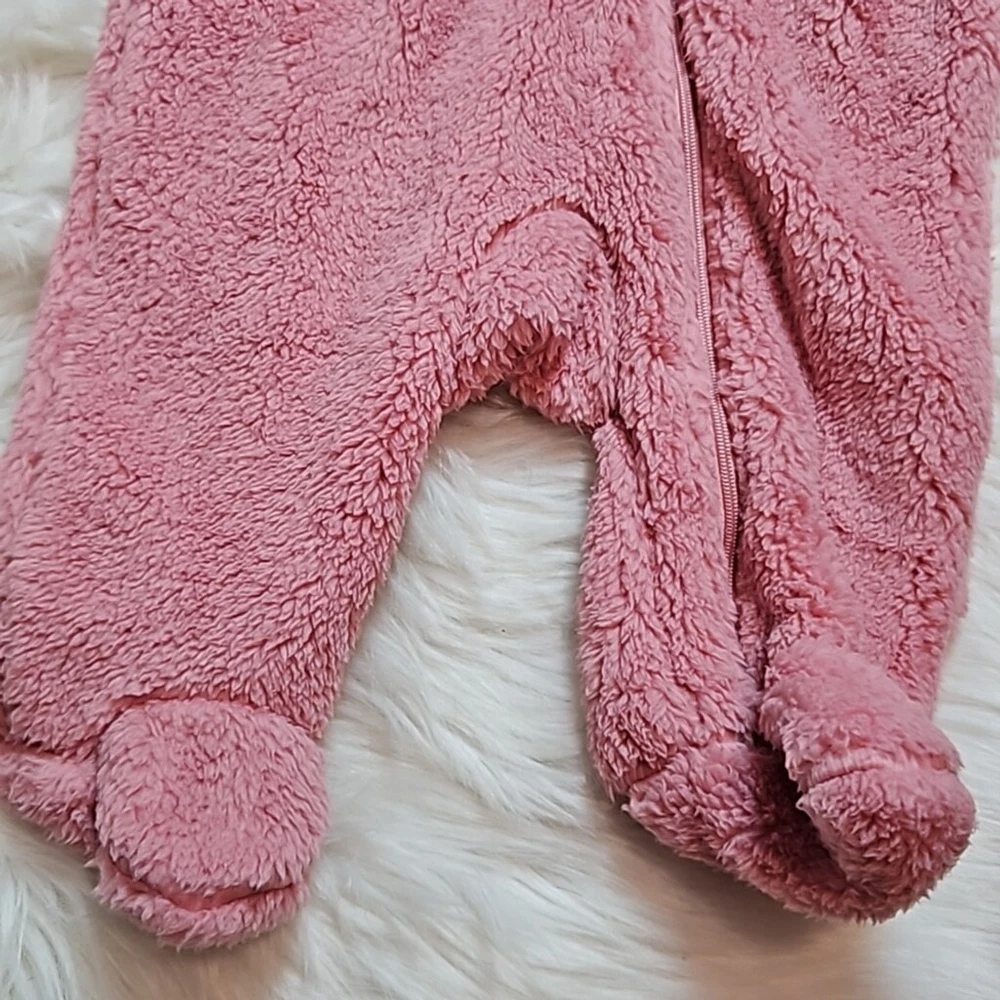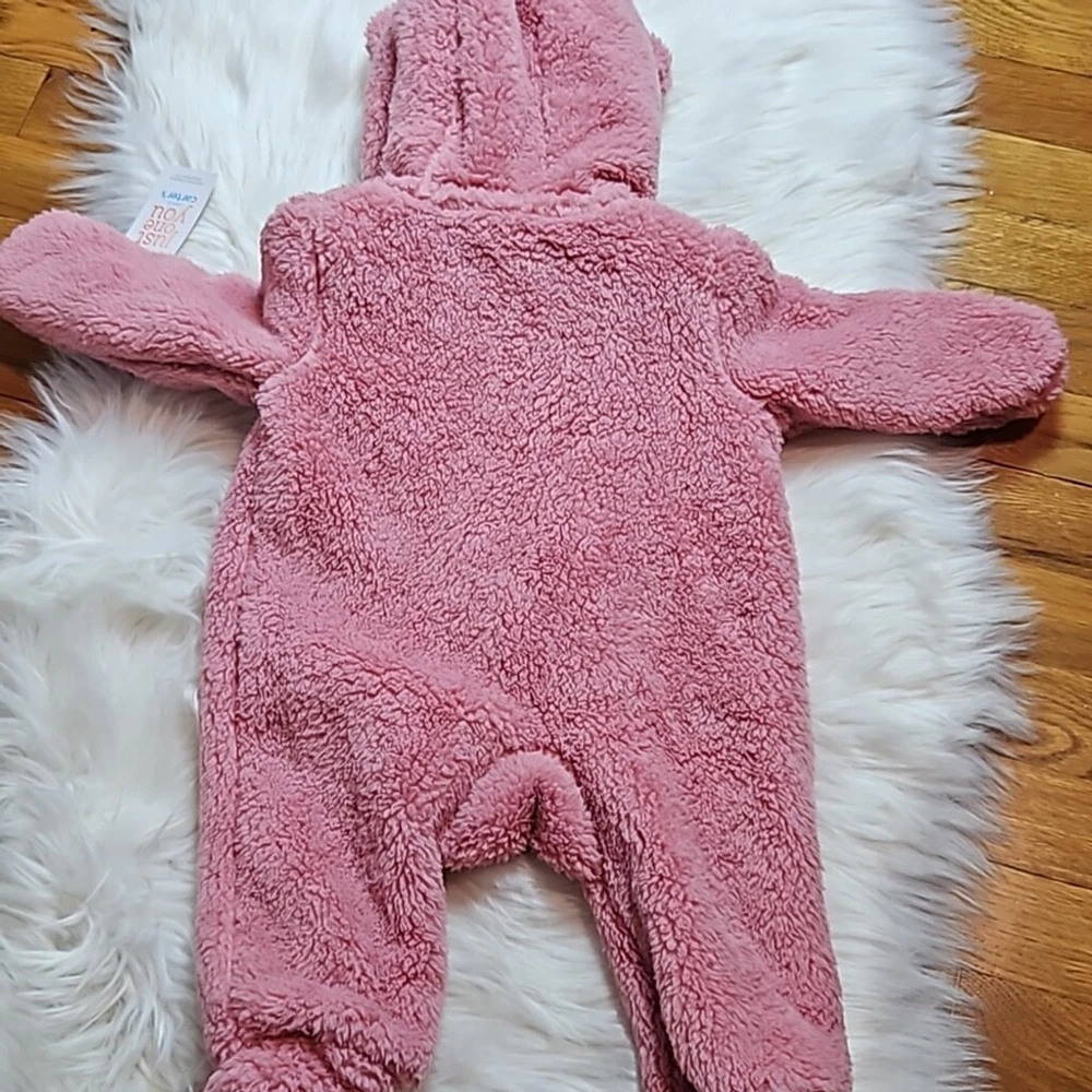 New with tag Carter's baby girls size 3 months Pink Bear-Ear Hooded Teddy bear sherpa Footie jumpsuit snowsuit pram suit bunting