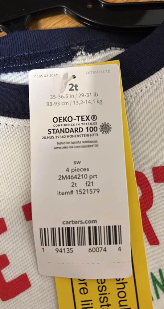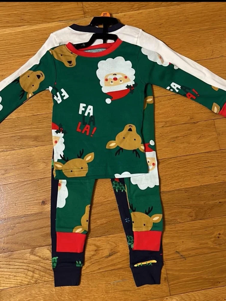 4-piece set Long sleeves Ribbed cuffs & neckline Covered elastic waistband for a comfy fit Fabric & Care: Cotton pjs are not flame resistant. To help keep children safe, cotton pjs should always fit snugly. 100% cotton rib Imported Machine washable
