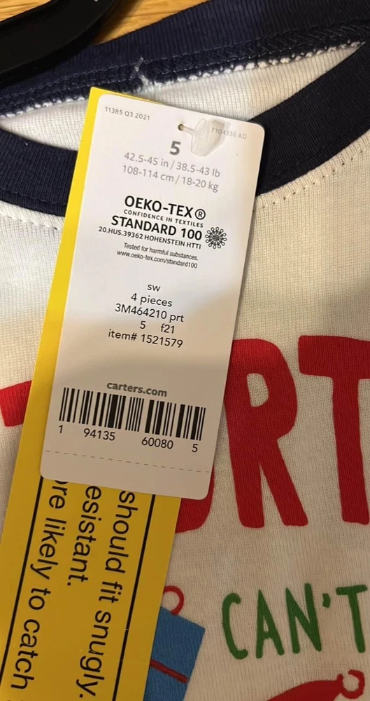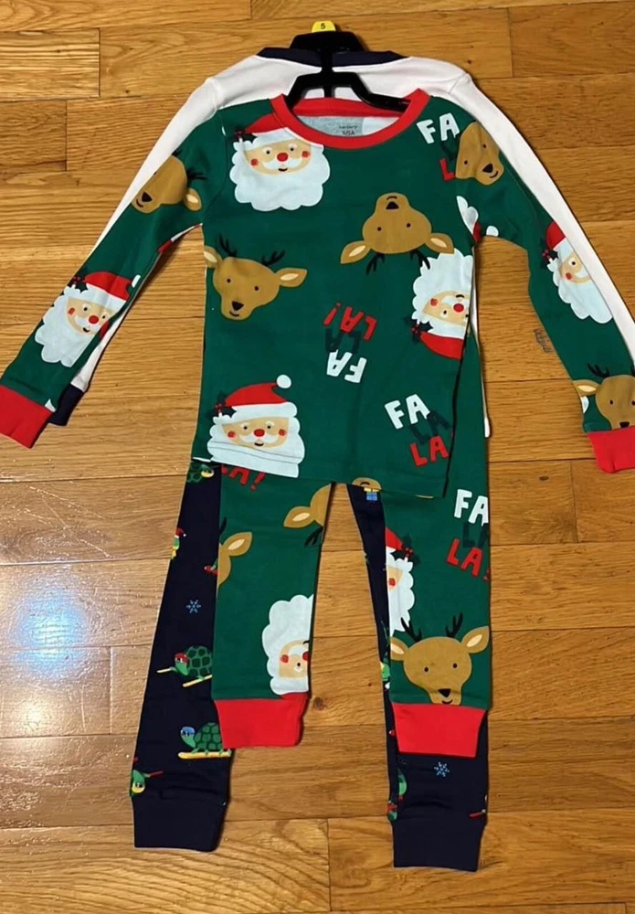 4-piece set Long sleeves Ribbed cuffs & neckline Covered elastic waistband for a comfy fit Fabric & Care: Cotton pjs are not flame resistant. To help keep children safe, cotton pjs should always fit snugly. 100% cotton rib Imported Machine washable