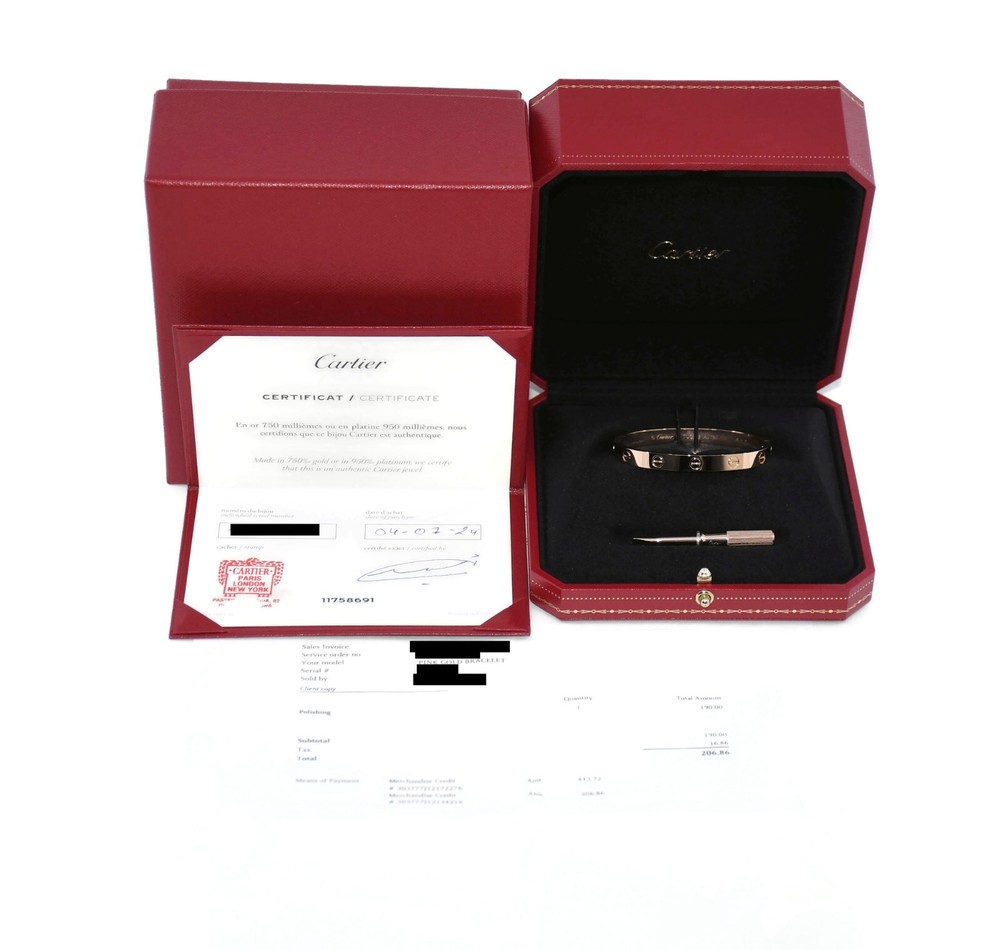 CARTIER 18K ROSE GOLD LOVE BRACELET SIZE:16 SKU:4-25/2 COMES WITH CARTIER SERVICE RECEIPT 100% AUTHENTIC WITH BOX AND CERTIFICATE