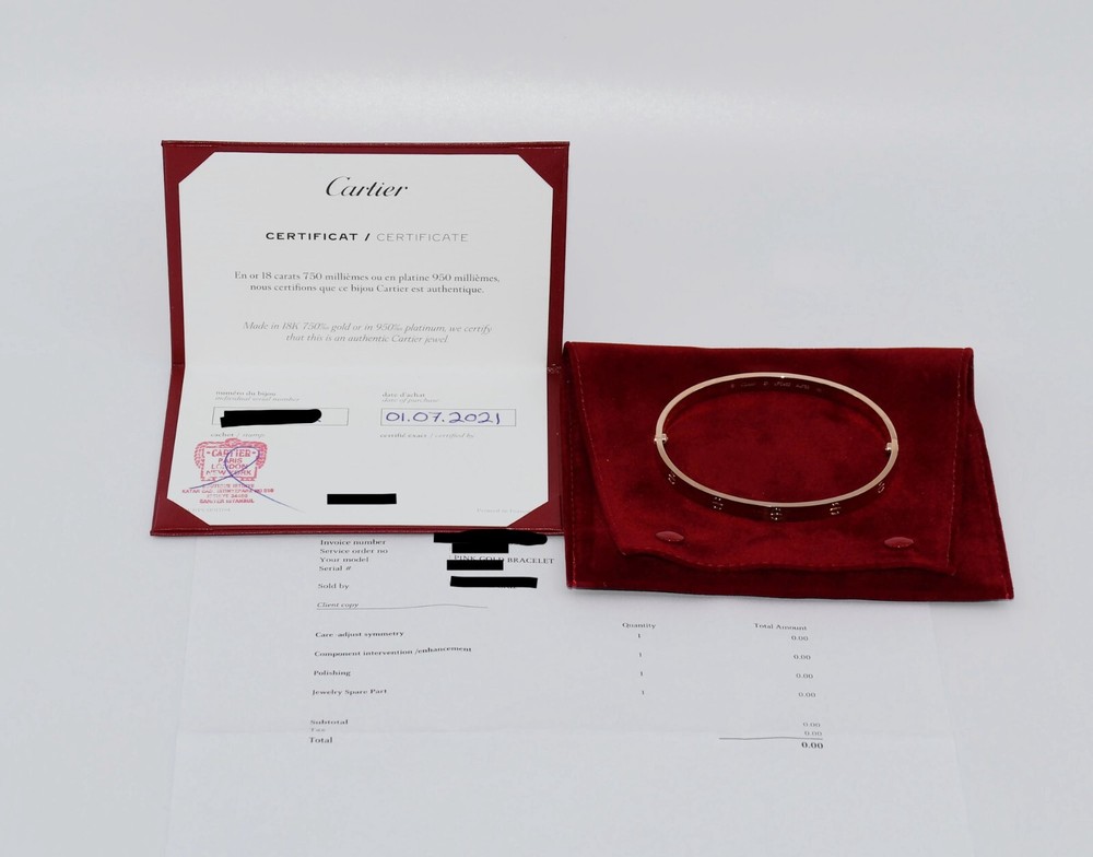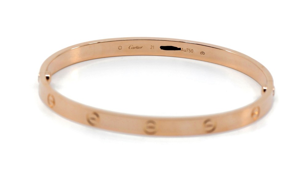 CARTIER 18K ROSE GOLD LOVE BRACELET SIZE:21 SKU:2-24/4-R RECENT CARTIER SERVICE WITH RECEIPT 100% AUTHENTIC WITH POUCH AND CERTIFICATE
