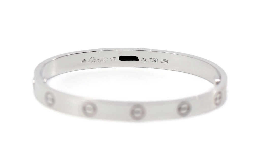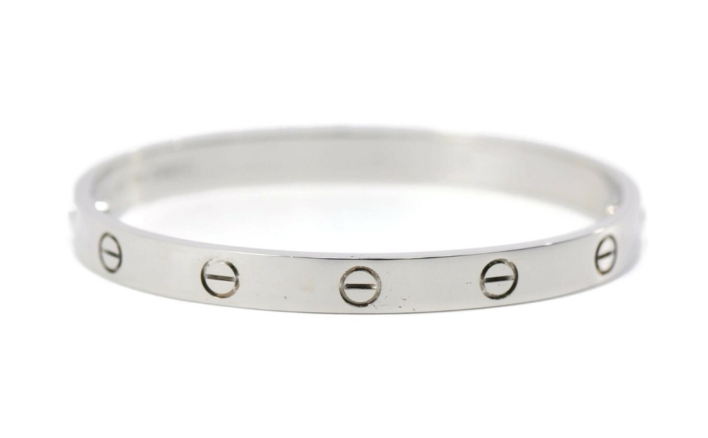 CARTIER 18K WHITE GOLD LOVE BRACELET SIZE:17 SKU:4-25 COMES WITH PURCHASE RECEIPT 100% AUTHENTIC WITH BOX AND CERTIFICATE