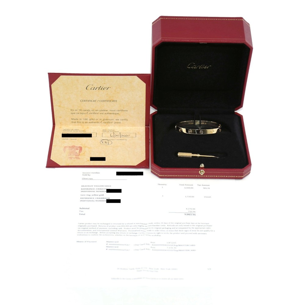 CARTIER 18K YELLOW GOLD LOVE BRACELET SIZE:16 SKU:4-25 COMES WITH CARTIER PURCHASE RECEIPT 100% AUTHENTIC WITH BOX AND CERTIFICATE