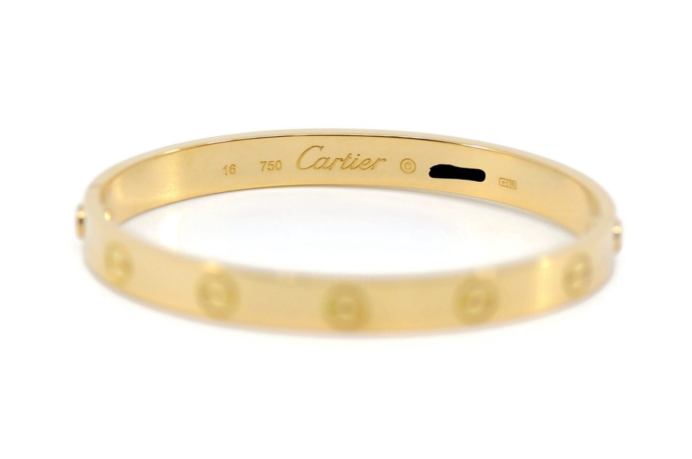 CARTIER 18K YELLOW GOLD LOVE BRACELET SIZE:16 SKU:9-24 COMES WITH CARTIER SERVICE RECEIPT 100% AUTHENTIC WITH BOX AND CERTIFICATE