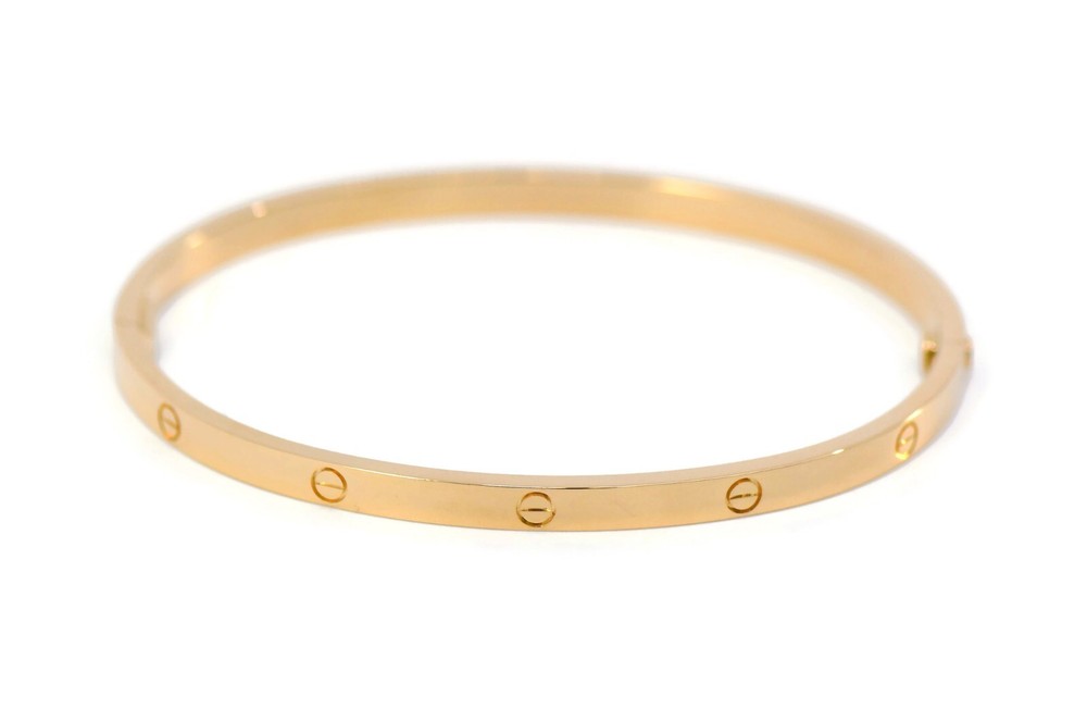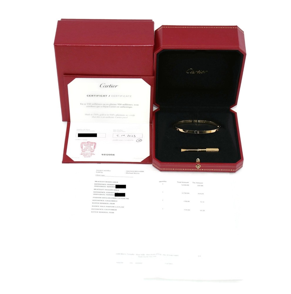 CARTIER 18K YELLOW GOLD LOVE BRACELET SIZE:18 SMALL MODEL SKU:5-25/4 COMES WITH PURCHASE RECEIPT 100% AUTHENTIC WITH BOX AND CERTIFICATE