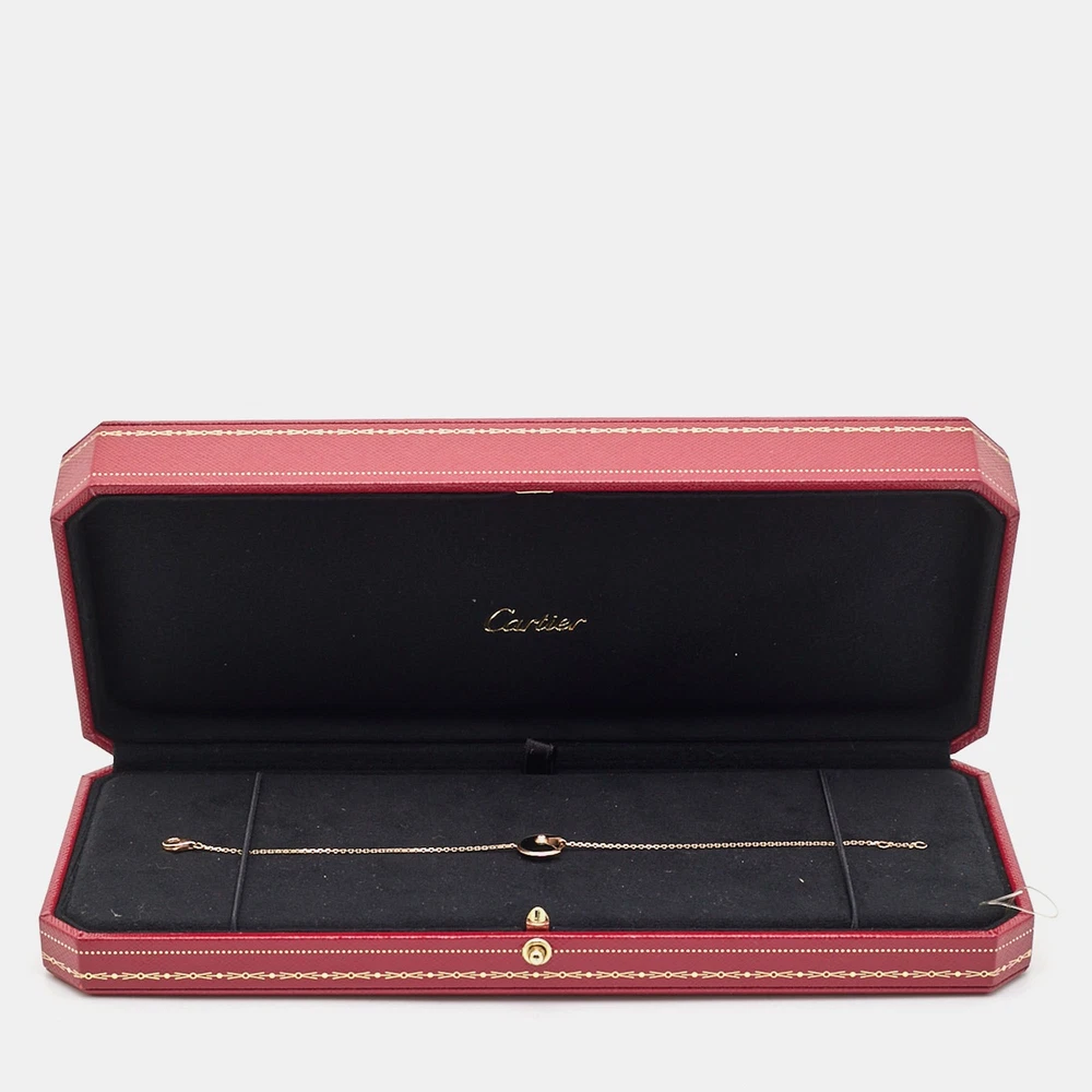 A magnificent offering from Cartiers Amulette de Cartier line. The bracelet comes sculpted from 18k rose gold and it has the signature motif as the charm inlaid with onyx highlighted by a shimmering diamond. Smoothly finished, the desirable creation deserves to be on your wrist.Certified by The Luxury Closet - This item has gone through a detailed authentication process overseen by our experts. We offer a lifetime guarantee of authenticity on all our items. Import duties, taxes and charges are not included in the item price. These charges are the buyers responsibility. Please check with your country’s customs office to determine what these additional cost will be prior to buying. Our eBay Store About Us Contact Us Add to Favorite Sellers Cartier Amulette De Cartier Onyx Diamond 18k Rose Gold XS Model Bracelet $2060.3 A magnificent offering from Cartiers Amulette de Cartier line. The bracelet comes sculpted from 18k rose gold and it has the signature motif as the charm inlaid with onyx highlighted by a shimmering diamond. Smoothly finished, the desirable creation deserves to be on your wrist. Product Details Brand Color Gold Dimensions Material 18k Rose Gold Size XS Outsole Width Outsole Length Heel Height Includes Certified by The Luxury Closet This item has gone through a detailed authentication process overseen by our experts. We offer a lifetime guarantee of authenticity on all our items. How We Check The in-house team of experts at The Luxury Closet is highly trained to verify the authenticity and the condition of the luxury products. They ensure that only 100% authentic items are put on sale.The evaluation process is unique with its own mix of assessment criteria and differs according to the category. Each item is evaluated based on the following combination of hallmarks, hardware, stitching, symmetry, material, craftsmanship, stamping, codes, hologram stickers, and packaging. Our authenticators also check if the items have been modified or amended (e.g., aftermarket diamonds, replaced batteries, repaired bags, etc.) International Buyers Import duties, taxes and charges are not included in the item price. These charges are the buyers responsibility. Please check with your country’s customs office to determine what these additional cost will be prior to buying.