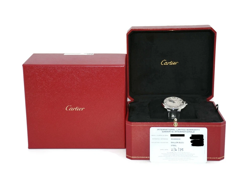 CARTIER BALLON BLEU STAINLESS STEEL WATCH REF:WSBB0039 CASE:40MM SKU:2-25 100% AUTHENTIC WITH BOX AND PAPERS