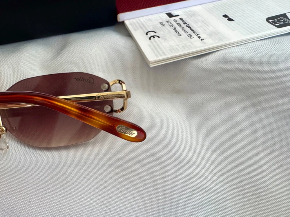 Cartier CT0029 RS Gold Frameless Sunglasses AUTHENTIC