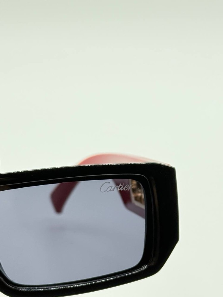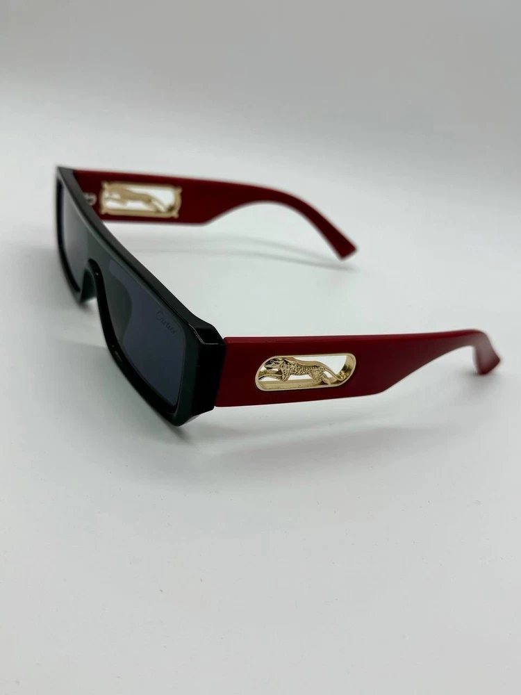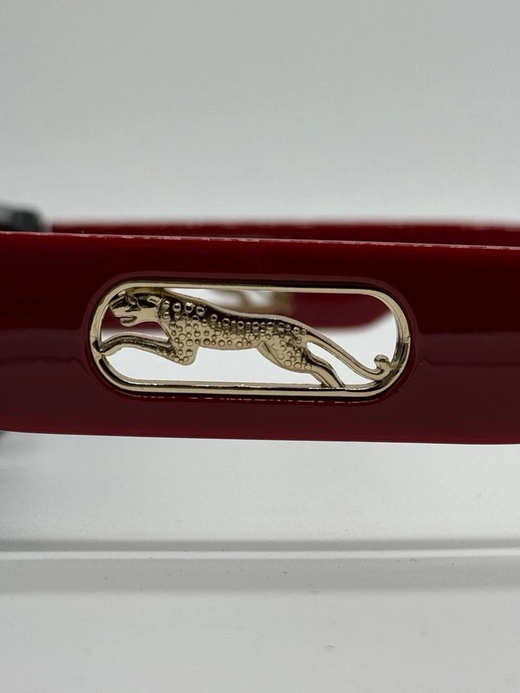 Experience the epitome of luxury and style with these Cartier Cheetah design Sunglasses. The red metal frame is accentuated by a bold, square silhouette, catering to both men and women who appreciate a touch of sophistication in their eyewear collection. The tinted black lenses offer UVA protection, ensuring both fashion and function under the sun. Notable for their designer theme, these sunglasses boast a distinct cheetah print that adds an exotic flair to any outfit. The square style is versatile, making these glasses a perfect accessory for a variety of occasions. Whether you're out for a casual day or dressing up for an event, these Cartier sunglasses will elevate your look with their timeless appeal and distinctive design.