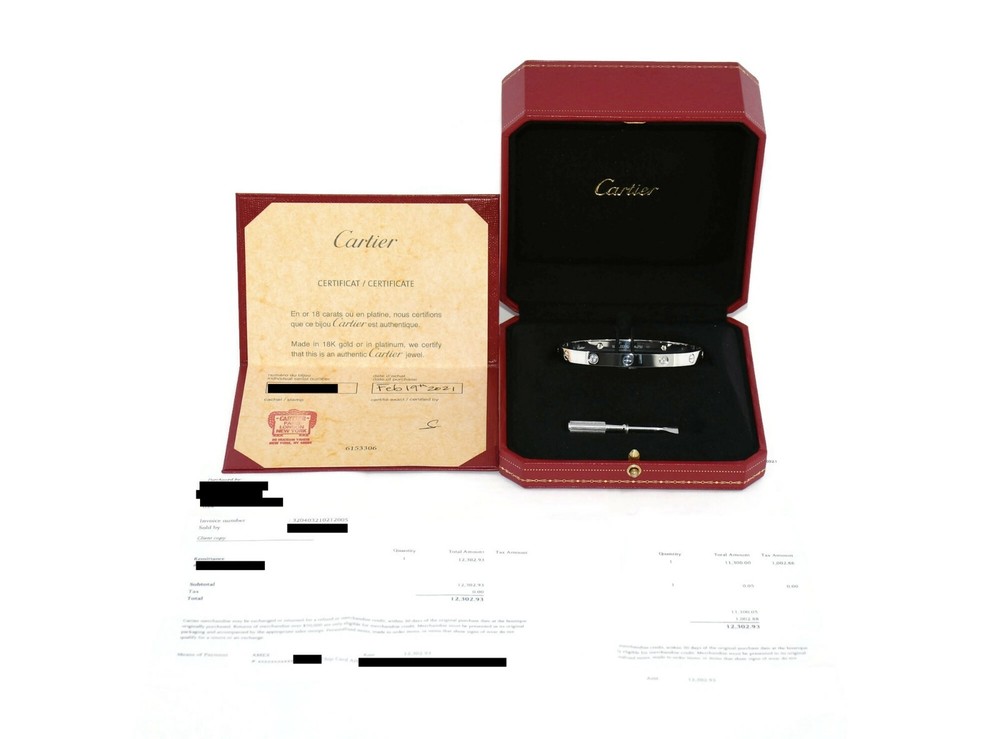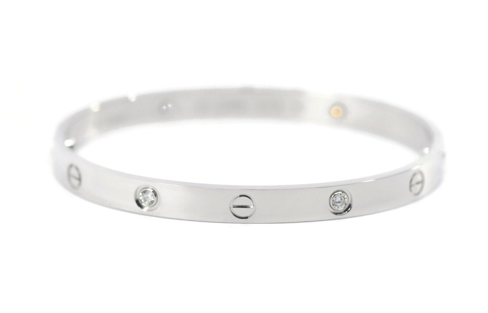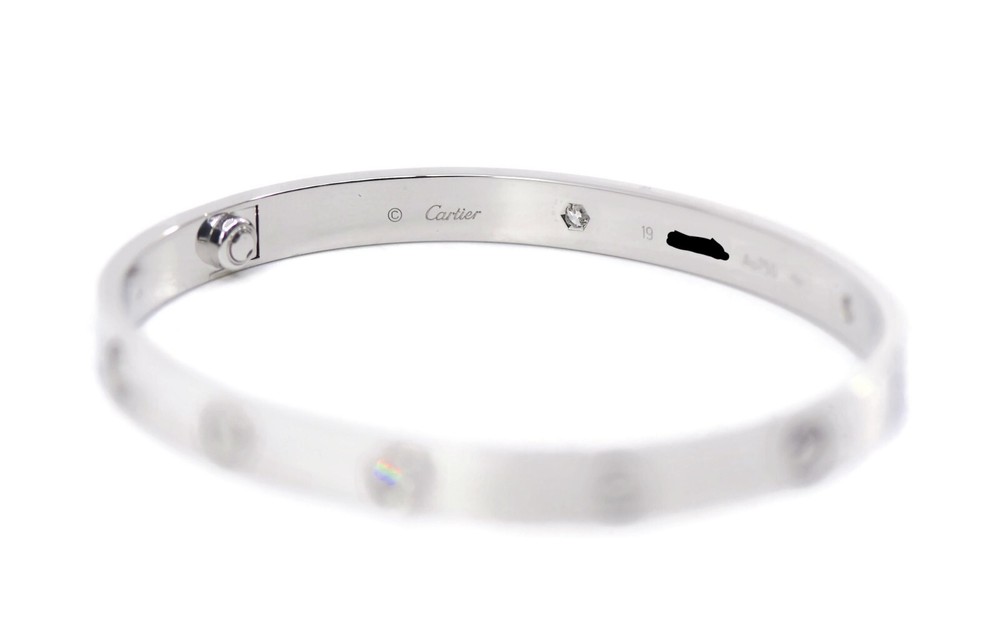 CARTIER 4 DIAMOND 18K WHITE GOLD LOVE BRACELET SIZE:19 SKU:3-25 COMES WITH PURCHASE RECEIPT 100% AUTHENTIC WITH BOX AND CERTIFICATE