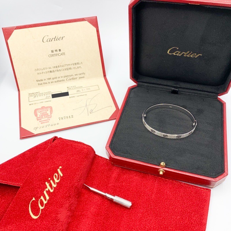 【Brand name】 CARTIER/Love bracelet #16 WG diamond 【Comment】 Cartier's signature bracelet, the Love bracelet, debuted in 1969. The diamonds lined up all over the bracelet highlight the screw motif, making it a gorgeous addition to any occasion, from formal to casual. This is also a popular item as a pair accessory. Comes with a Cartier warranty and gem identification certificate from July 2005, and the exterior has been refinished, so you can use it with confidence. 【Data】 ・Inquiry No.…K00810B ・Brand…CARTIER ・Condition...Polished finish、S-rank ・Model No.…- ・Serial…DK1※※※ ・Color…White gold ・Material…K18WG ・Weight…26.17g ・Notation size…16 ・Accessory…Cartier Warranty、Cartier genuine case、driver、Gem identification book、Our guarantee driver case ・Control No.…N410 【Attention】 ・This is an after-diamond product. We only handle diamonds that meet our standards, with clarity of VS or SI or above, cut of excellent or good or above, and are colorless, transparent, and highly shining, and are carefully finished by skilled craftsmen at our exclusive workshop (in Japan). ・Finished and polished, it can be used comfortably from the day it arrives. ・The original Cartier box is not a bracelet-specific box.Please check the photo. ・Some areas appear dark and in shadow due to the shooting environment. ・The colors and textures in the photos may differ from the actual product depending on the external environment and your device. Please Note Please click the photos to enlarge, check each photo very carefully for its details. International Buyers Import duties, taxes, and charges are not included in the item price or the shipping cost. These charges responsibilities will rest with the buyers. Please check with the customs office in local to determine what these additional costs will be before bidding or buying. Other information the seller may like to remind: These charges are normally collected by the freight (shipping) company or when you pick the item up, please do not confuse them with additional shipping charges. We do not lower the values of the items or describe the items as gifts. According to the regulations of the US and the International government, this conduct is prohibited. The dispatch method All Items are sent from Japan. The package with tracking number is covered by shipping insurance. Please note: Items may be required import duties, taxes, and additional charges. The recipient of the shipment is the importer on recording, who is responsible for all import fees in the destination country. If you have any questions about import duties and taxes, please contact your local customs office before buying and bidding. Return Policy Due to the nature of branded products, we do not accept returns or exchanges after the product has been shipped. Please check the product details before purchasing. In addition, our store's appraisers conduct strict double authentication to determine the authenticity of the product. We do not handle any counterfeit products. Although there have been no cases in the past, if the product is determined to be a counterfeit, we will refund the full amount. SHIPPING FREE delivery! Postage is free for the order by "buy it now",but postage will be charged separately when it is auction. We offer you worldwide FREE Shipping.Express Mail Service(EMS) or DHL with Tracking number provided. CONTACTS Please contact us via eBay message. If you have any problem or question, please contact us ASAP.