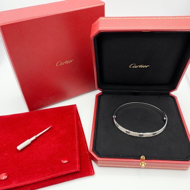 【Brand name】 CARTIER/Love bracelet #19 WG diamond 【Comment】 Cartier's signature bracelet, the Love bracelet, debuted in 1969. The diamonds lined up all over the bracelet highlight the screws, making it a gorgeous piece for any occasion, from formal to casual. It is also a popular item as a pair accessory. The exterior has been refinished to a new condition, so you can use it with confidence. 【Data】 ・Inquiry No.…K40817F ・Brand…CARTIER ・Condition...Polished finish、S-rank ・Model No.…- ・Serial…L24※※※ ・Color…White gold ・Material…K18WG ・Weight…32.43g ・Notation size…19 ・Accessory…Cartier genuine case、driver、Our guarantee cartier driver case ・Control No.…N505 【Attention】 ・This is an after-diamond product. We only handle diamonds that meet our standards, with clarity of VS or SI or above, cut of excellent or good or above, and are colorless, transparent, and highly shining, and are carefully finished by skilled craftsmen at our exclusive workshop (in Japan). ・Finished and polished, it can be used comfortably from the day it arrives. ・The original Cartier box is not a bracelet-specific box.Please check the photo. ・Some areas appear dark and in shadow due to the shooting environment. ・The colors and textures in the photos may differ from the actual product depending on the external environment and your device. Please Note Please click the photos to enlarge, check each photo very carefully for its details. International Buyers Import duties, taxes, and charges are not included in the item price or the shipping cost. These charges responsibilities will rest with the buyers. Please check with the customs office in local to determine what these additional costs will be before bidding or buying. Other information the seller may like to remind: These charges are normally collected by the freight (shipping) company or when you pick the item up, please do not confuse them with additional shipping charges. We do not lower the values of the items or describe the items as gifts. According to the regulations of the US and the International government, this conduct is prohibited. The dispatch method All Items are sent from Japan. The package with tracking number is covered by shipping insurance. Please note: Items may be required import duties, taxes, and additional charges. The recipient of the shipment is the importer on recording, who is responsible for all import fees in the destination country. If you have any questions about import duties and taxes, please contact your local customs office before buying and bidding. Return Policy Due to the nature of branded products, we do not accept returns or exchanges after the product has been shipped. Please check the product details before purchasing. In addition, our store's appraisers conduct strict double authentication to determine the authenticity of the product. We do not handle any counterfeit products. Although there have been no cases in the past, if the product is determined to be a counterfeit, we will refund the full amount. SHIPPING FREE delivery! Postage is free for the order by "buy it now",but postage will be charged separately when it is auction. We offer you worldwide FREE Shipping.Express Mail Service(EMS) or DHL with Tracking number provided. CONTACTS Please contact us via eBay message. If you have any problem or question, please contact us ASAP.