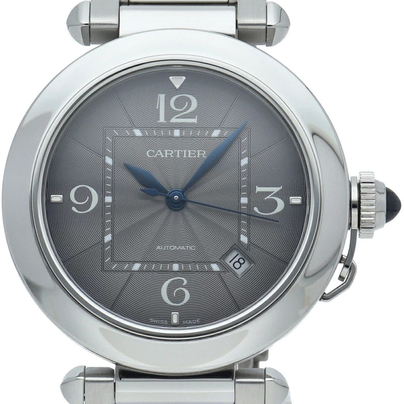 Description 🏰 Pasha de Cartier 41mm - Sophisticated Dark Gray Dial (Ref. WSPA0026) The Cartier Pasha de Cartier is a modern icon, reimagining the legendary 1985 design for the contemporary connoisseur. This 41mm model features a stunning Dark Gray Dial with a subtle flinqué texture, offering a moody and masculine alternative to the traditional silver dial. With its signature chained crown cover and bold Arabic numerals, it is a statement of power and refinement. ✨ HIGHLIGHTS: Like New Condition: This timepiece has been professionally polished and shows virtually no signs of wear. It has been used only a few times and presents as "Mint." High-Grade Movement: Powered by the Automatic 1847 MC manufacture movement , visible through the sapphire crystal case back. Modern Versatility: Equipped with the "SmartLink" adjustment system and "QuickSwitch" strap interchangeability. Full Set & High Year: Includes the original Warranty Card dated October 2022 and a genuine replacement band for added style options. ⚙️ Product Specifications Feature Specification Brand Cartier Model Pasha de Cartier 41mm Ref. Number WSPA0026 Movement Automatic (1847 MC) Material Stainless Steel Dial Color Dark Gray Case Size Approx. 41 mm Wrist Size Approx. 19 cm Warranty Date October 2022 Accessories Warranty Card, Replacement Band 💎 Condition Detail Report This item is in "Like New" condition, having undergone a professional polish. Overall Status: Mint. The case and bracelet are exceptionally clean with a brilliant luster. Dial & Crystal: Flawless. The dark gray dial and sapphire crystal are in pristine condition. Strap/Bracelet: The stainless steel bracelet is firm and smooth. The included replacement band provides a fresh look for different occasions. Operation: Running perfectly to factory specifications. ✨ Why This Pasha 41mm? While OMEGA is defined by its professional tool-watch heritage, Cartier is the undisputed master of "The Watch as an Object of Art." This WSPA0026 is a particularly desirable reference due to its versatile dark gray palette and the inclusion of the "QuickSwitch" system. As a 2022 model in near-mint condition, it represents a significant opportunity for a collector seeking a modern Cartier classic without the brand-new retail price tag. Please review the high-resolution photos to appreciate the textured gray dial and the iconic blue-steel hands. Shipping Fedex,DHL,Japan Post *For FedEx / DHL shipping items, a person residing in the remote area will have to pay an additional shipping fee. International Buyers - Please Note: Import duties, taxes, and charges are not included in the item price or shipping cost. These charges are the buyer's responsibility. Please check with your country's customs office to determine what these additional costs will be prior to bidding or buying. Thank you for your understanding. Read more... Conditions shown here are based on our standard. Please understand that the conditions of used items that have been stored in our warehouse changes by time. Listings that shows "Working" means that it confirmed working when we stored items in our warehouse, some items might stop working during the shipment or after delivery to you.(We double check if they are working before shipping them out) Pre-owned(used) items are used items, so please purchase if you acknowledge it.