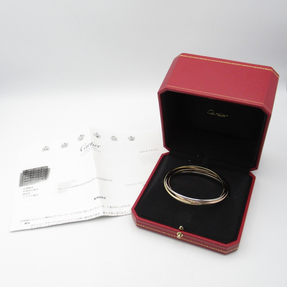 CARTIER Trinity Bracelet 18KYG Yellow 18KPG Rose 18KWG white gold Used unisex Description / Specification Brand Name CARTIER Item Name CARTIER Trinity Bracelet 18KYG Yellow 18KPG Rose 18KWG white gold Used unisex Color Gold‐ish colors Material K18 (Yellow Gold) × K18WG(White Gold) × K18PG(Rose Gold) Metal Purity K18 (Yellow Gold) × K18WG(White Gold) × K18PG(Rose Gold) Size Band Length:19.5cm(7.7") Width:2.7mm(0.1") Weight 39.0g Accessories Case/Repair certificate Accessories not stated are not included. (If there is no mention of a box or dust bag, they are not included either.) Wrist Size(Approx) 〜19.5cm(-7.7") Instore Code 2101218672411 Up Date 2025/04/26 Condition Pre-owned used Bracelet by CARTIER in good condition . Outside Condition There is some usability, scratches, rubbing, and stain. There are some signs of wear. *This product has been polished, but there may be small scratches that cannot be removed. Thank you for your understanding. Please take a look at the descriptions and the pictures above to check the condition of the item before the purchase. Rank Pristine New, Not used. Excellent Excellent, Allmost as good as new. Very Good A slightly used. Good There are a few scratches, stains and looks a little used. Fair + There are some noticeable scratches and stains. Looks used. Fair There are some noticeable scratches and stains. Looks obviously used. Poor + There are many scratches and stains. Looks very used. Poor Looks very used, but still usable. About Authenticity We have a large selection of luxury brand products We guarantee that all of the items we list and sell are authentic. Feel free to contact us if you have any inquiries or concerns. We are approved seller from Tokyo Metropolitan Police License No : 301061906960(Used Item Seller ) In addition, We also are a member of the Association Against Counterfeit Product Distribution (AACD), and we promise to have no bogus under any circumstances. Please read before order Shipment cannot be marked as a 'gift' or with altered price due to the custom declaration laws. Import duties, taxes, or other additional fees will be charged by your local customs. We are not responsible for any customs and taxes applied to your order. All fees imposed during or after shipping are the responsibilities of the customer (tariffs, taxes, etc.). Please inquire the details of import duties or taxes at the customs office in your country directly before making an order. Payment & Shipping Payment We only accept payments via Managed Payments. Shipping All items will be shipped from Japan. We can only make shipment to the registered address with your ebay account. All orders are processed within 3-5 business days. Orders are not shipped on weekends or holidays. 1.Shipments will be made by DHL. 2.For orders which are not able to be shipped by DHL, they will be shipped by Fedex or UPS. 3.Orders for China will be shipped via EMS of the Japan Post. 4.We currently suspend shipping services to APO/FPO, Brazil, Chile, Indonesia, Mexico, Peru, Philippines, Russian Federation, and Ukraine. Delivery time 1.Delivery usually takes approximately 3-10 business days 2. Shipments might be delayed due to the following reasons: a)Bad weathers b)Public holidays c)Delay at the customs office Returns/Cancellation Policies As we selling our items on other websites and in our retail stores in Japan at the same time, if the item was sold out before your purchase, your order will be cancelled with a full refund Customers are allowed to return the item within 30 days from the delivery or pick up date for a full refund. Items without the security tag are not allowed to be returned. All fees imposed during the return shipping are the responsibilities of the customer Please contact us before starting a return Please provide us the tracking number once return shipment is made. If the mistake caused by human error is occer, please forgive me for cancelling by us. See more Policies & Description