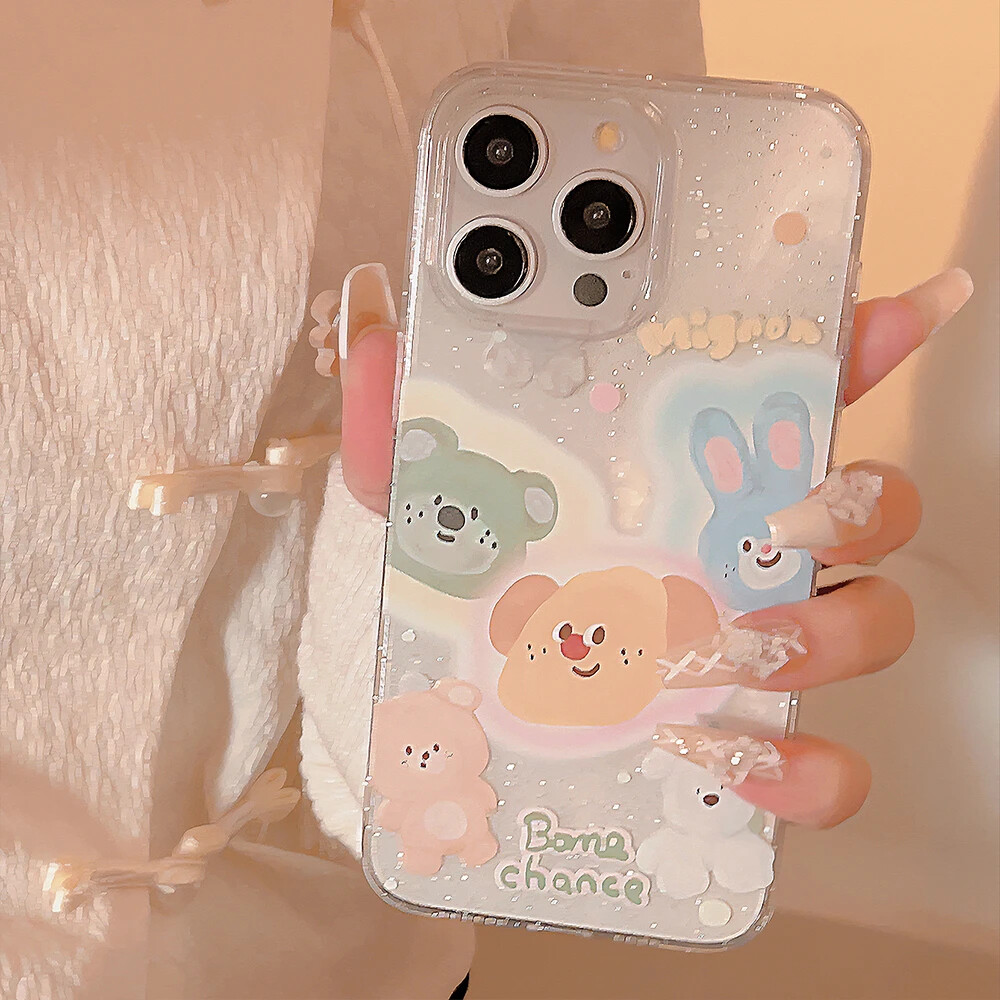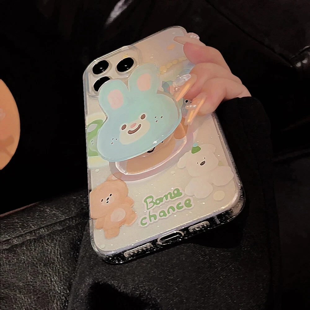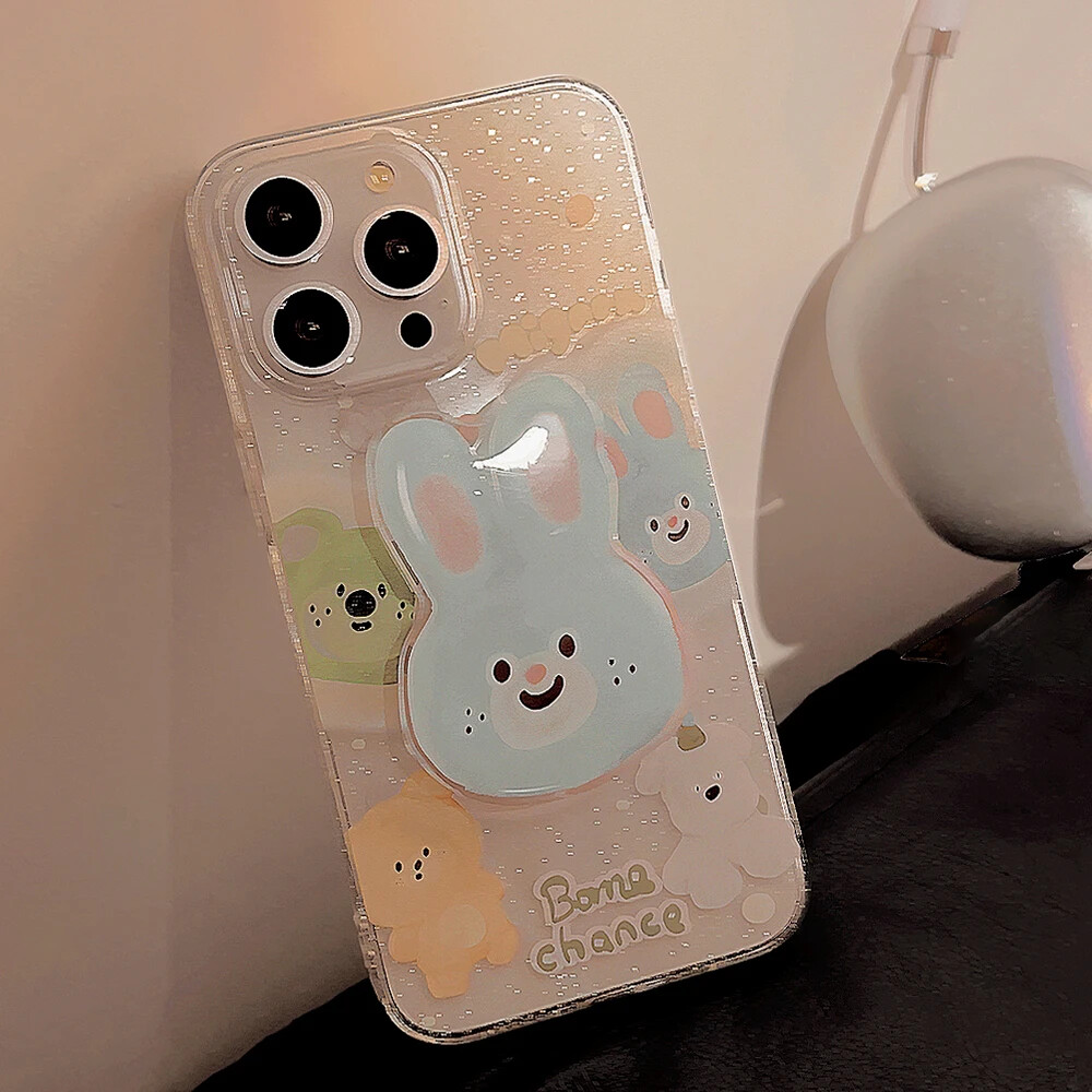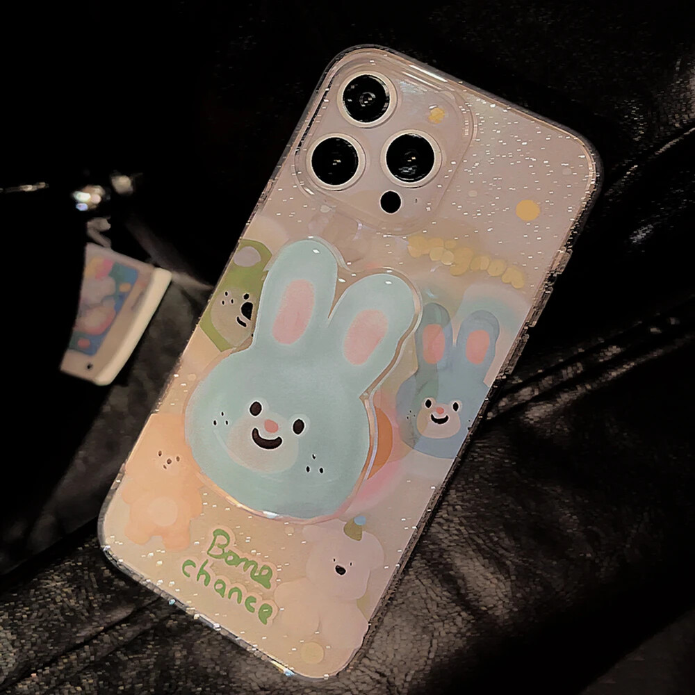 Cartoon Glitter Bunny Clear Phone Case for iPhone 15 14 13 12 11 Pro Max