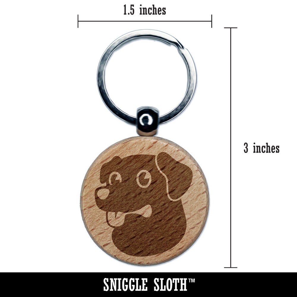 Cartoon Labrador Retriever Dog Engraved Wooden Round Keychain Charm Tag