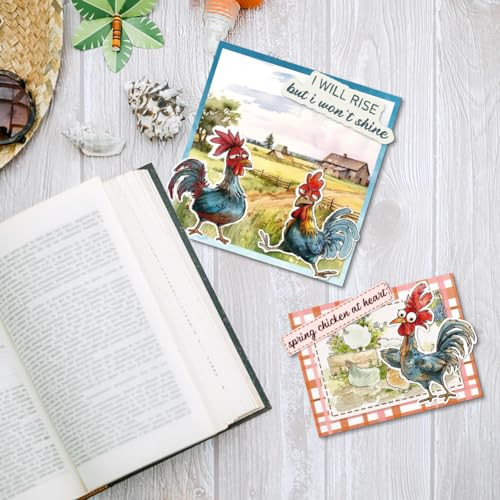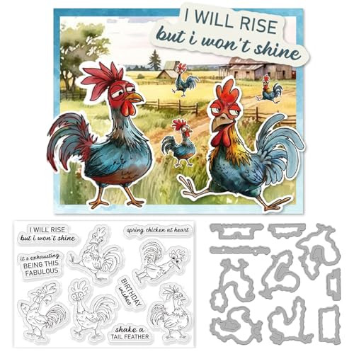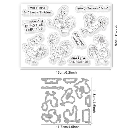 Cartoon Rooster Clear Stamp Set with Matching Metal Dies
