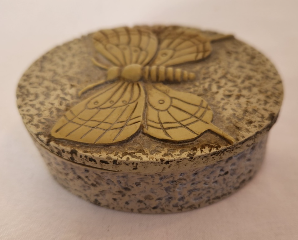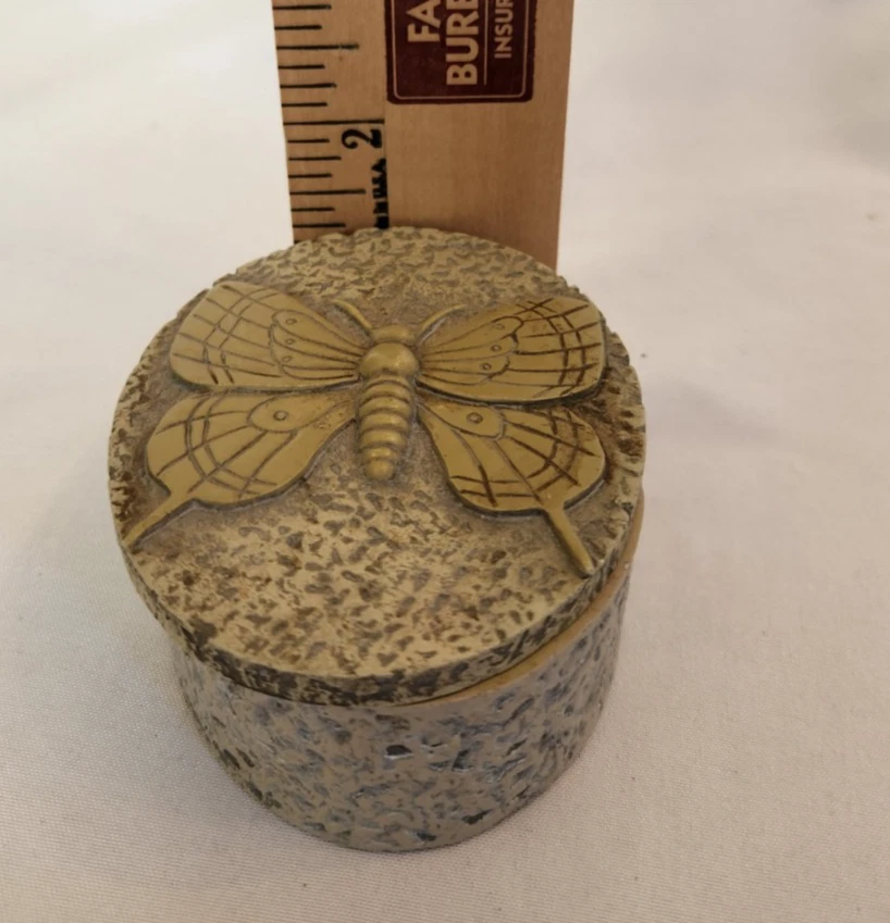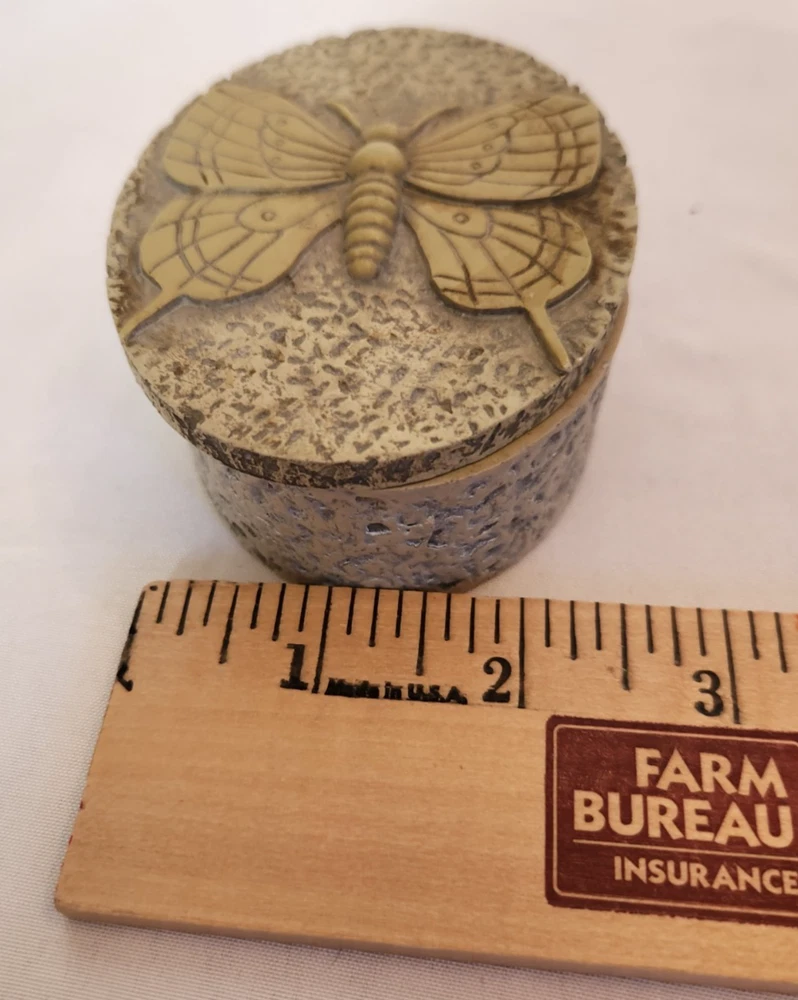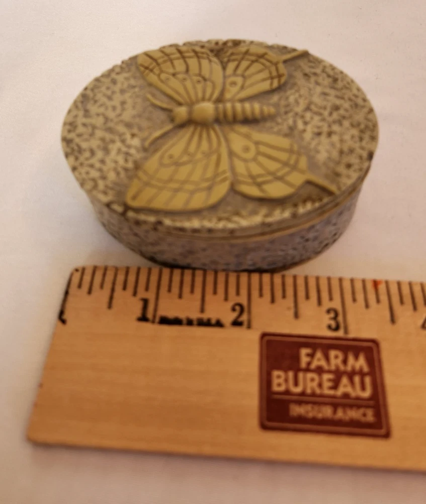 Type: Trinket Box Material: Soapstone Color: Beige Shape: Oval Size: Small Seller Notes: “Previously owned. May show signs of cosmetic wear. No chips or cracks noted.” Pattern: Butterfly Insect Nature Animal Collection: Keepsake Boxes Subject: Design Occasion: All Occasions Features: With Lid Brand: Butterfly