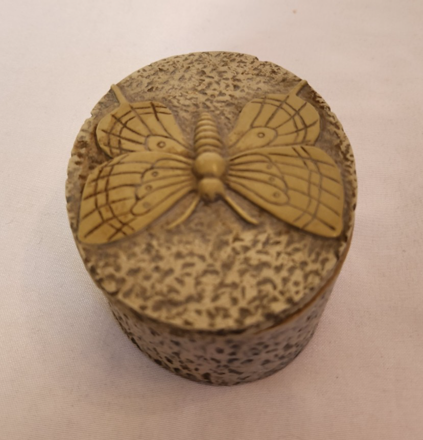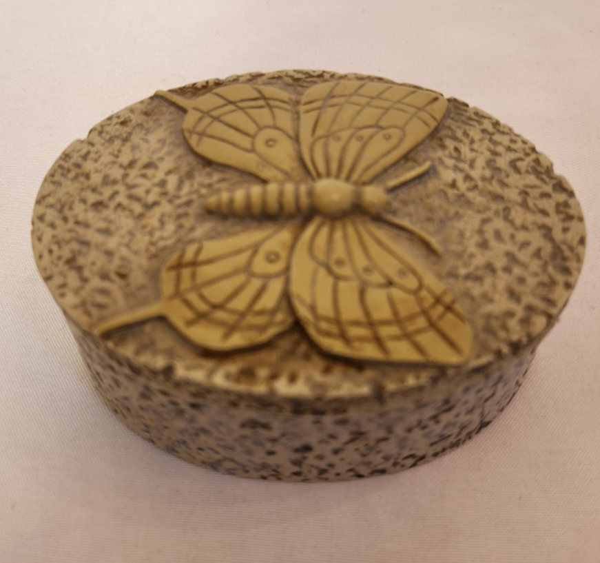 Carved Soapstone Butterfly Trinket Box with Oval Design