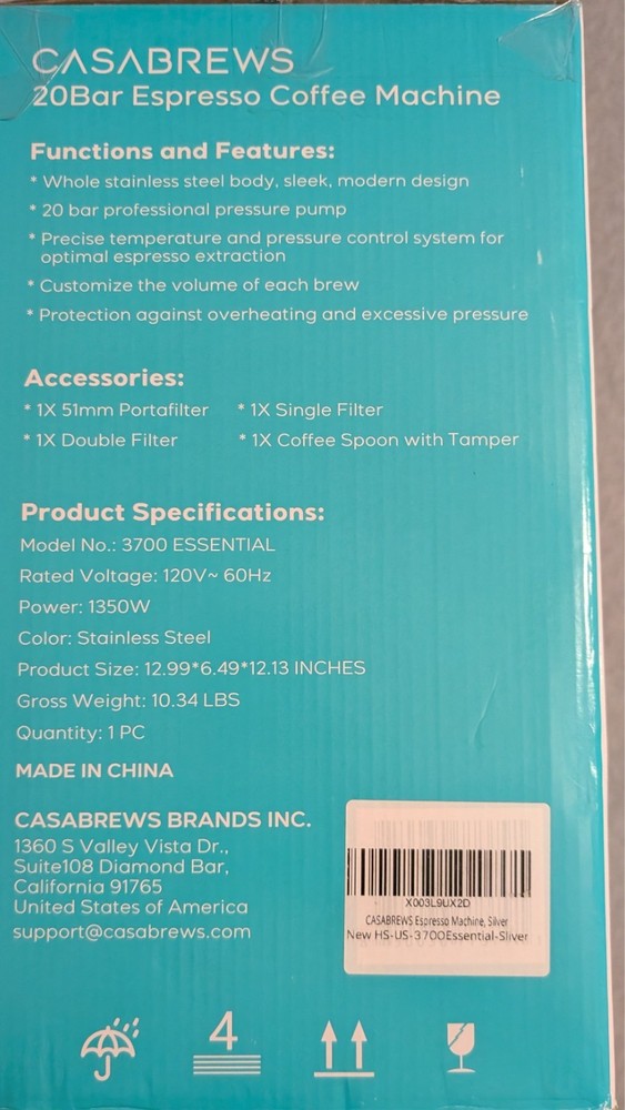 Casabrews Stainless Steel Espresso Machine CM5418 -missing water resoirve