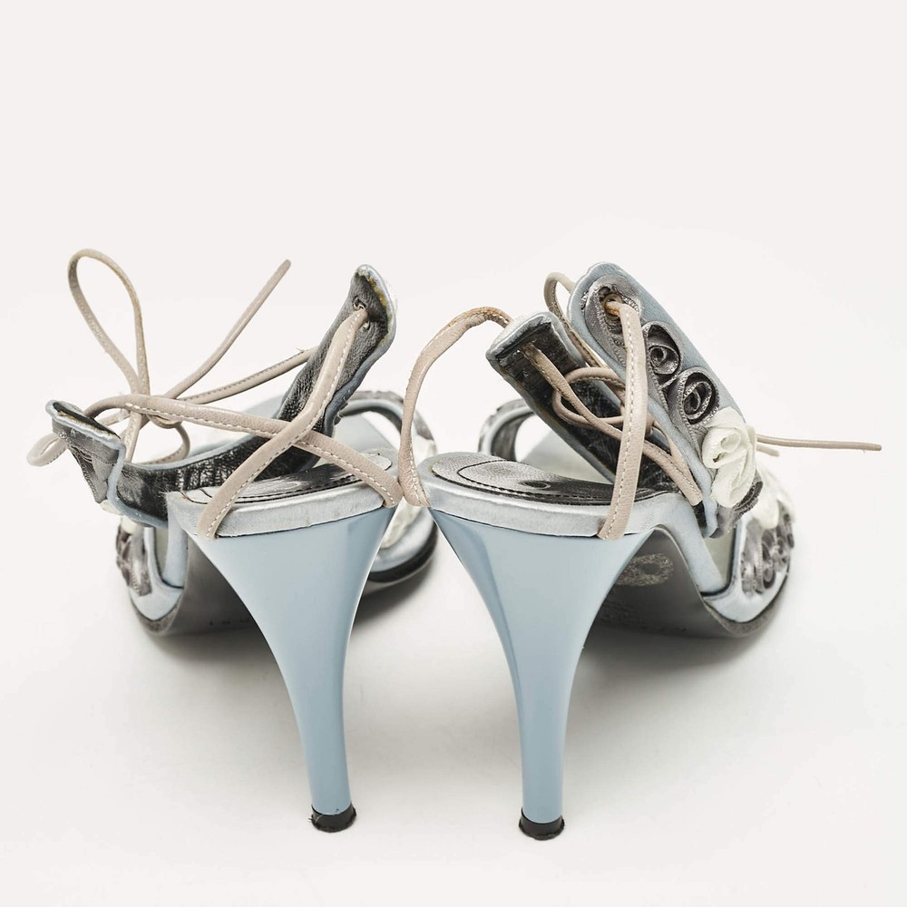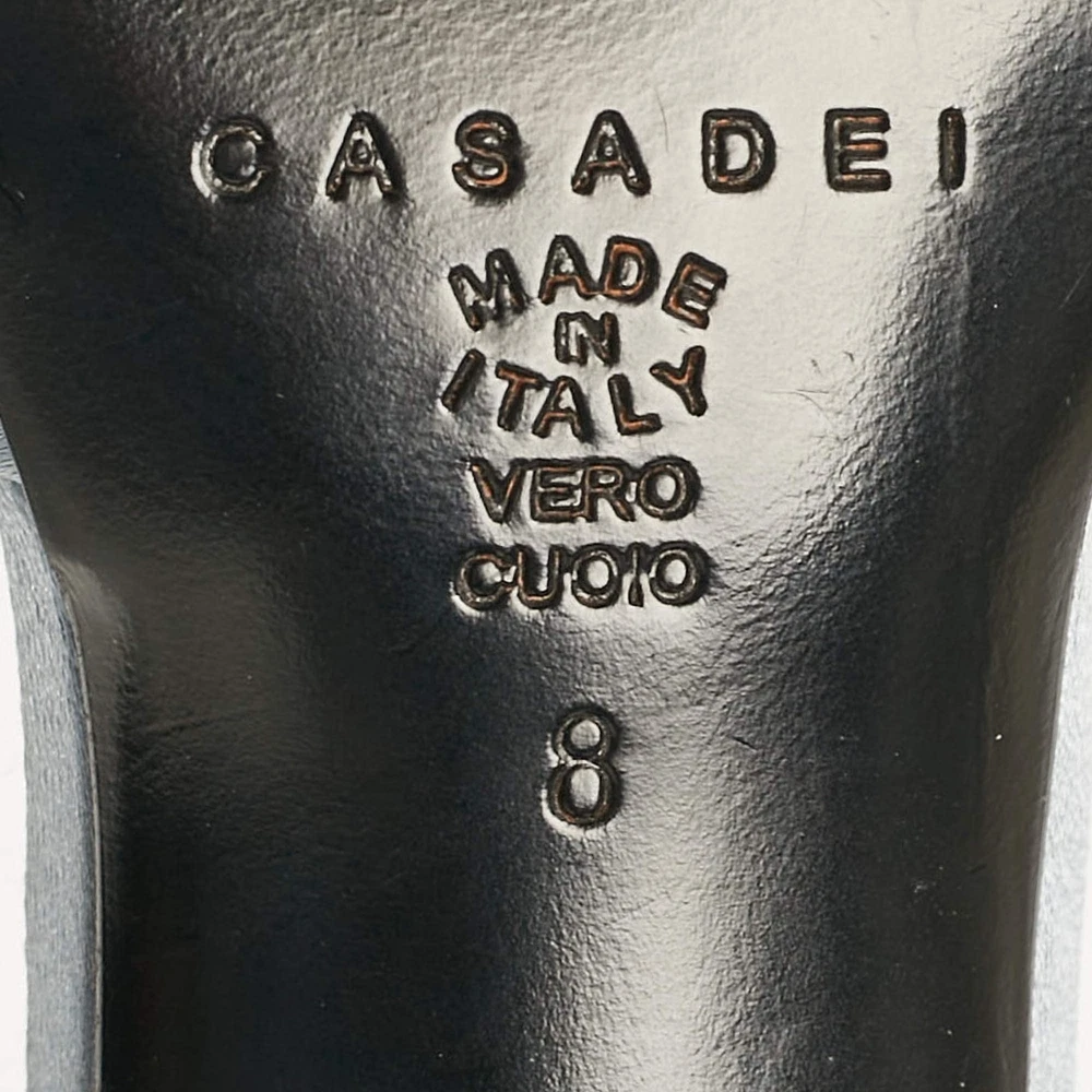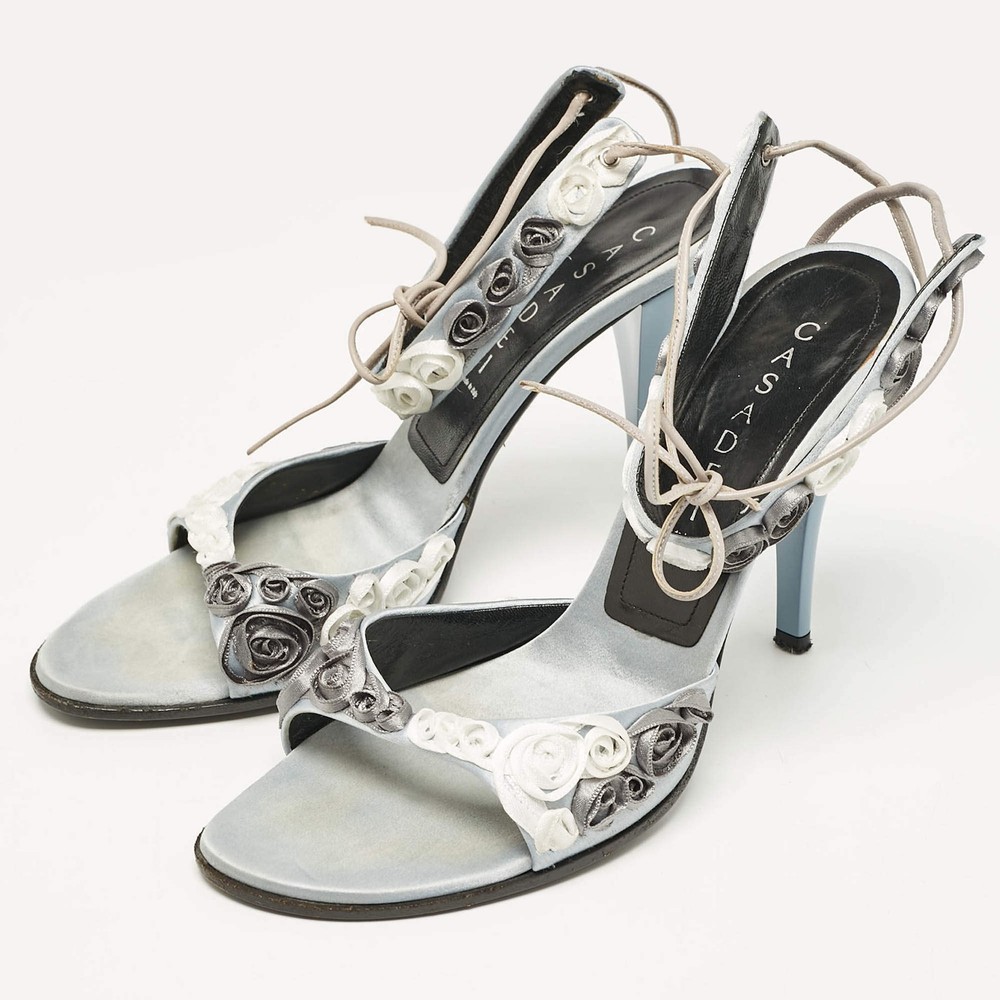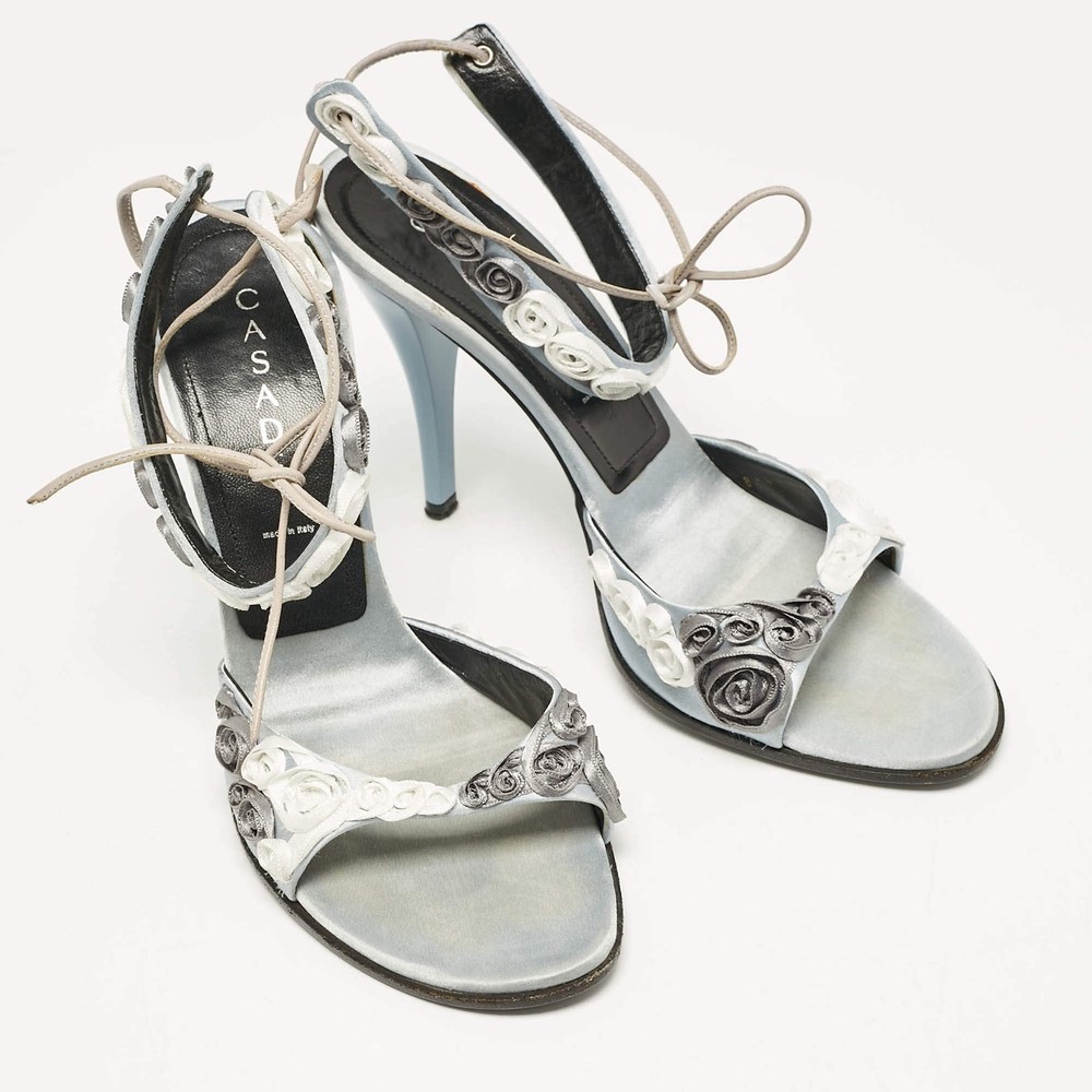 Our eBay Store About Us Contact Us Add to Favorite Sellers Casadei Grey Satin Floral Ankle Tie Up Sandals Size 38 These sandals will frame your feet in an elegant manner. Crafted from quality materials, they display a classy design and comfortable insoles. Product Details Brand Casadei Color Grey Includes Original Dustbag Outsole Length 23 cm Outsole Width 8 cm Size US 8 (EU 38/UK 5) Certified by The Luxury Closet This item has gone through a detailed authentication process overseen by our experts. We offer a lifetime guarantee of authenticity on all our items. How We Check The in-house team of experts at The Luxury Closet is highly trained to verify the authenticity and the condition of the luxury products. They ensure that only 100% authentic items are put on sale.The evaluation process is unique with its own mix of assessment criteria and differs according to the category. Each item is evaluated based on the following combination of hallmarks, hardware, stitching, symmetry, material, craftsmanship, stamping, codes, hologram stickers, and packaging. Our authenticators also check if the items have been modified or amended (e.g., aftermarket diamonds, replaced batteries, repaired bags, etc.) International Buyers Import duties, taxes and charges are not included in the item price. These charges are the buyers responsibility. Please check with your country’s customs office to determine what these additional cost will be prior to buying.