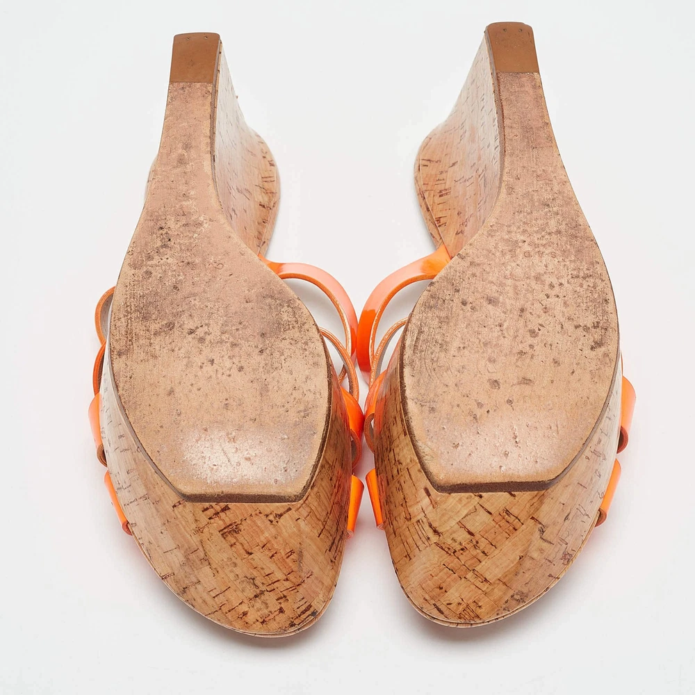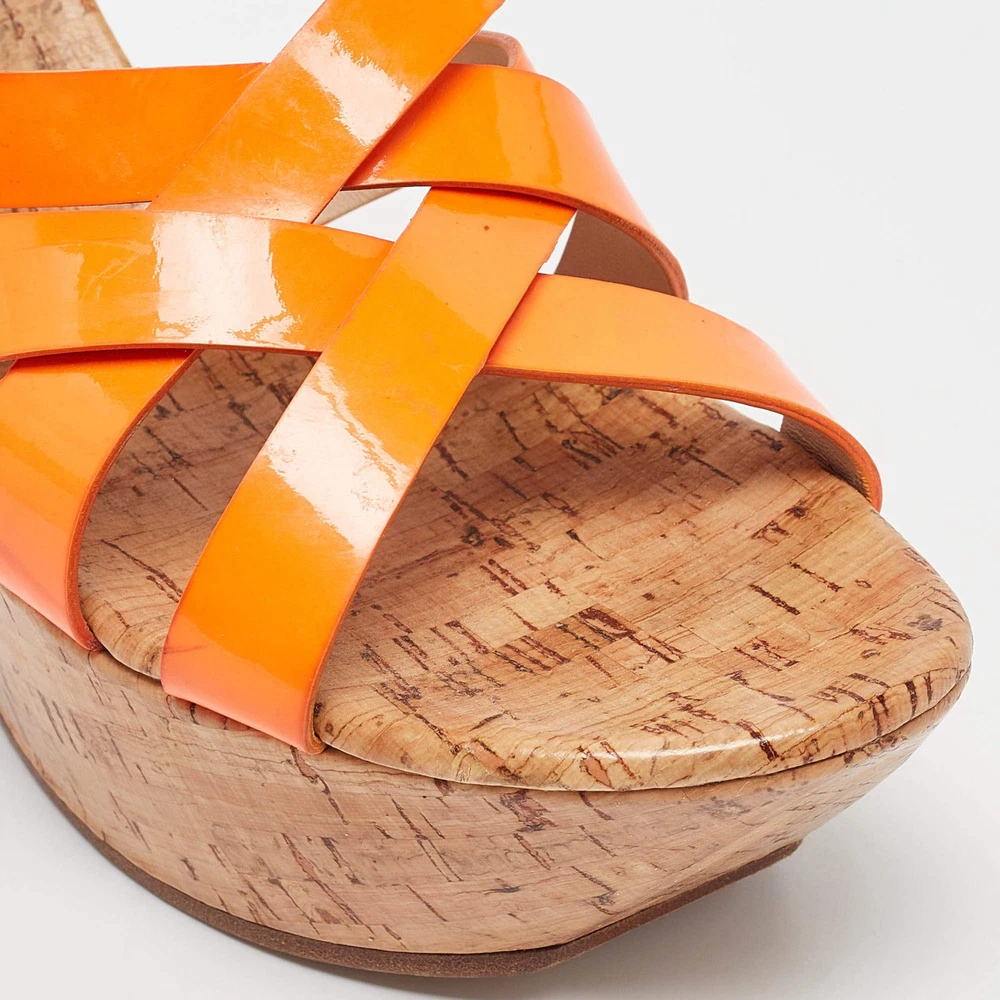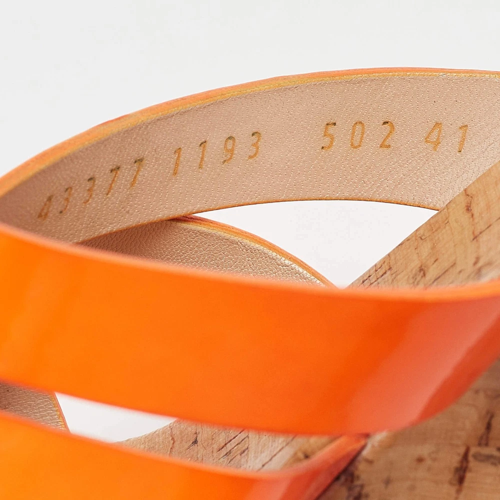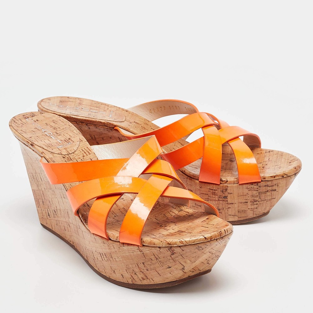 Our eBay Store About Us Contact Us Add to Favorite Sellers Casadei Orange Patent Leather Cork Platform Wedge Slide Sandals Size 41 These orange sandals from Casadei are ultra-feminine and spell unapologetic glamour. These stunning sandals are crafted from patent leather and feature an open-toe silhouette. They flaunt a strappy design on the vamps and smooth insoles. The 10cm cork wedge heels look absolutely amazing and provide the utmost comfort. Product Details Brand Casadei Color Orange Includes Original Dustbag Outsole Length 22 cm Outsole Width 7 cm Size 41 Certified by The Luxury Closet This item has gone through a detailed authentication process overseen by our experts. We offer a lifetime guarantee of authenticity on all our items. How We Check The in-house team of experts at The Luxury Closet is highly trained to verify the authenticity and the condition of the luxury products. They ensure that only 100% authentic items are put on sale.The evaluation process is unique with its own mix of assessment criteria and differs according to the category. Each item is evaluated based on the following combination of hallmarks, hardware, stitching, symmetry, material, craftsmanship, stamping, codes, hologram stickers, and packaging. Our authenticators also check if the items have been modified or amended (e.g., aftermarket diamonds, replaced batteries, repaired bags, etc.) International Buyers Import duties, taxes and charges are not included in the item price. These charges are the buyers responsibility. Please check with your country’s customs office to determine what these additional cost will be prior to buying.