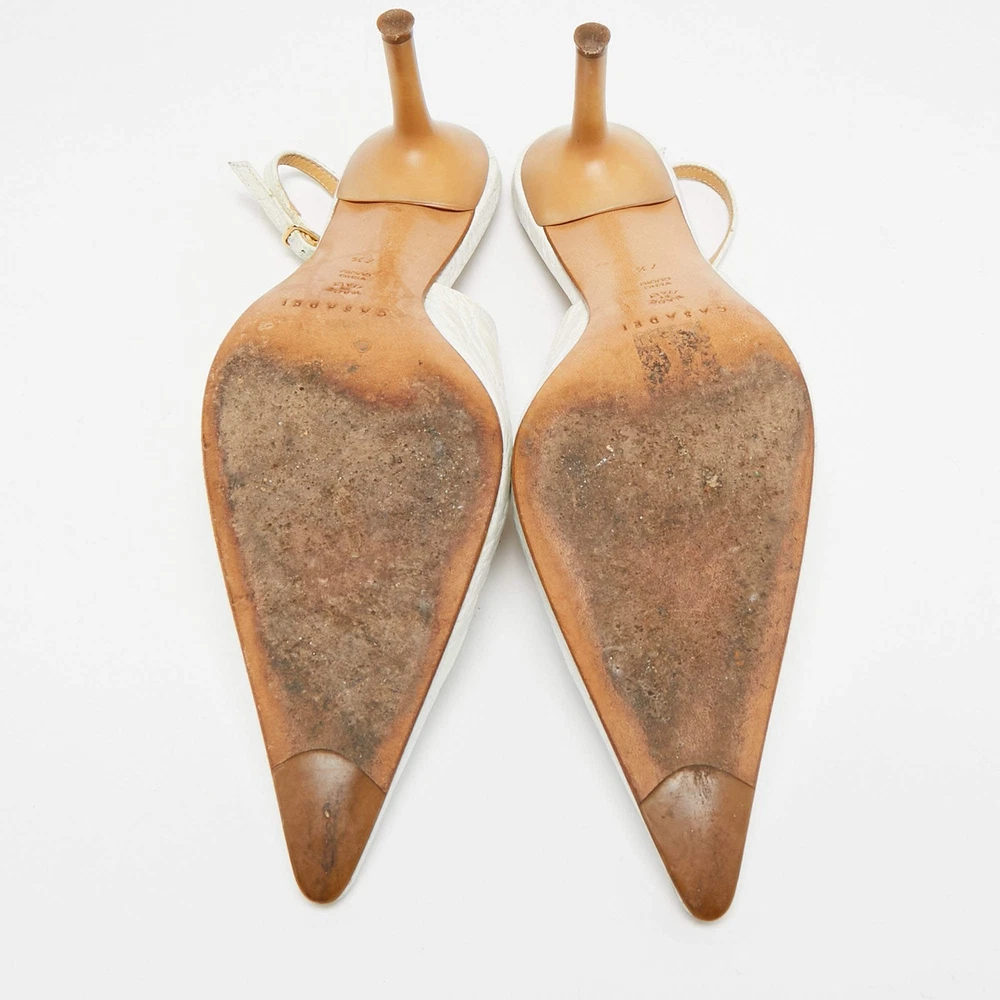 Casadei White Leather Pointed Toe Slingback Pumps Size 375