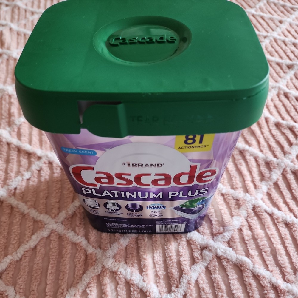 The Cascade Platinum Plus Dishwasher Detergent Pods in Fresh Scent come in an 81-count pack, providing 81-90 loads of cleaning power. These adjustable and portable pods are designed for dishwasher use and are made by the trusted brand Cascade. Each pod is compact, measuring 6.5 inches in length, 7.5 inches in height, and 5 inches in width, making it easy to handle and store. With its Platinum Plus formula, this detergent pod is effective in removing tough stains and odors from dishes, while leaving a fresh scent behind. Made in the United States, this product is a convenient and efficient solution for keeping dishes sparkling clean.