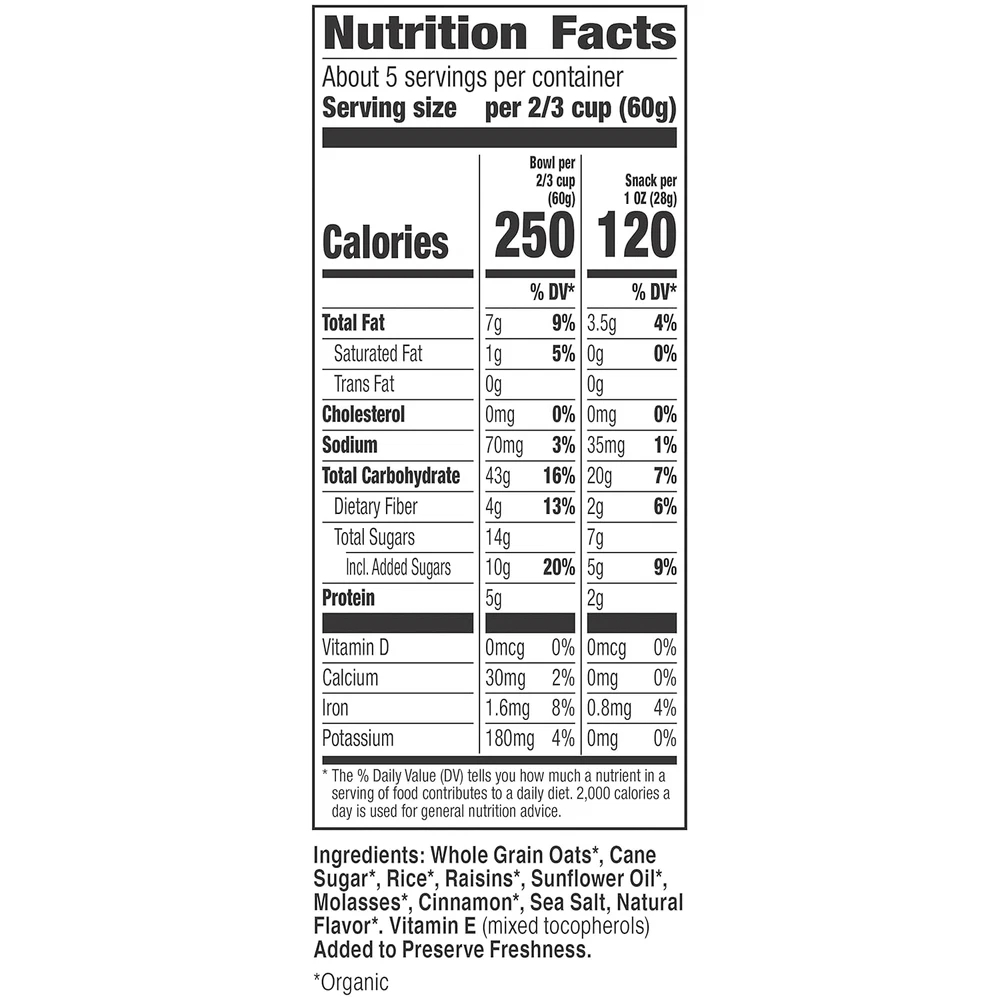 Store New Arrivals Add to Favorite View Feedback Contact Cascadian Farm Organic Granola, Cinnamon Raisin Cereal, Resealable Pouch, 11 Oz. Description Item model number S-PL-11802 Product Dimensions 3 x 6.5 x 9.5 inches; 11.2 ounces Country of Origin USA Age Range (Description) Adult Diet Type Vegetarian Flavor Cinnamon Raisin Item Form Granola Brand Cascadian Farm Manufacturer GENERAL MILLS SALES INC. CINNAMON RAISIN GRANOLA: Organic granola made with whole-grain oats, crisp rice, raisins and cinnamon; Comes in a convenient, resealable pouch for maximum freshness and easy opening NON-GMO: USDA certified organic non-GMO granola WHOLESOME INGREDIENTS: Contains 32 grams of whole grain and four grams of fiber per serving CROWD-PLEASING GRANOLA: Snackers of all ages will love the sweet and satisfying crunch of this exceptional granola CONTAINS: 11 oz Cascadian Farm Organic Cinnamon Raisin Granola comes with delicious whole-grain oats, crisp rice, plump raisins and tasty cinnamon. With 32 grams of whole grain* and 4 grams of fiber per serving, this organic granola helps start the day right. Serve this granola cereal with milk or on top of your favorite Greek yogurt, or enjoy it by the handful on your next hike. Now in a convenient resealable pouch. Keep an extra pouch in your pantry for a crunchy anytime snack. *32g whole grain per serving. At least 48g recommended daily. Cascadian Farm has spent more than 50 years working to protect our planet through actions like planting pollinator habitats, helping farmers build healthy soil, and integrating climate-smart crops into our products. Step- by- step, we are reimagining the relationship between food, farmland, nature & communities, seeking to drive and inspire meaningful change along the way. ABOUT US We offer the best prices around on high quality products. Our E-store includes media such as books, movies, music and games while offering electronics, toys, sporting apparel, clothing, tools, general home, garden items and more. SHIPPING We are always working hard to ensure your package arrives as soon as possible. Please understand that some factors like weather, high postal traffic, and the performance of shipping companies are outside of our control. We offer free shipping to the lower 48 states and ship within 2 business days of payment, usually sooner. We do not accept P.O. Boxes. Please provide a physical address. RETURNS We offer a 30-Day Return Policy on items which you are not completely satisfied with. You have the option for a full-refund or an exchange of the item. No returns are available on items shipped outside of the USA. PAYMENT We accept PayPal. CONTACT US This page content is yet to come Please ad us to your favorite seller and visit again later Thank You CUSTOMER SATISFACTION We try our very best to make sure every customer is completely satisfied. If there's a problem, message us! We're happy to help.