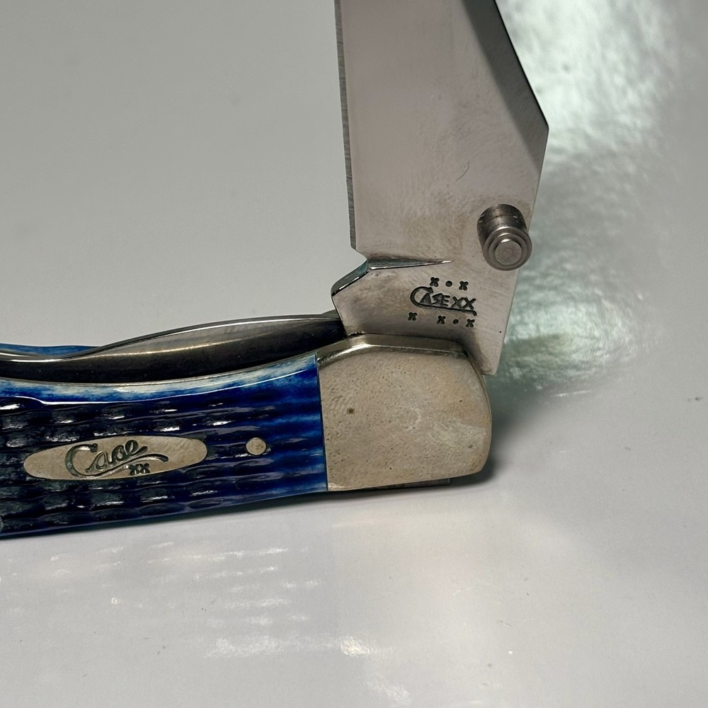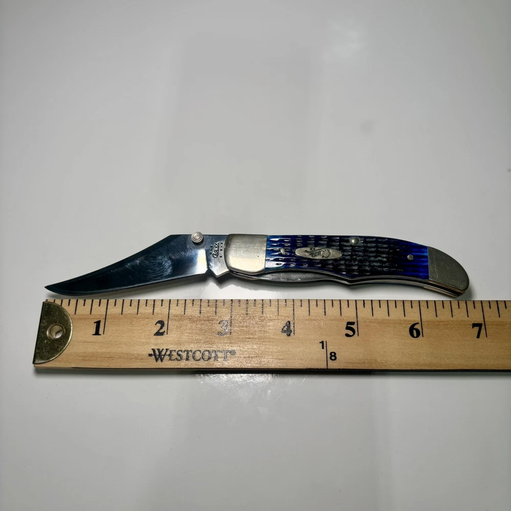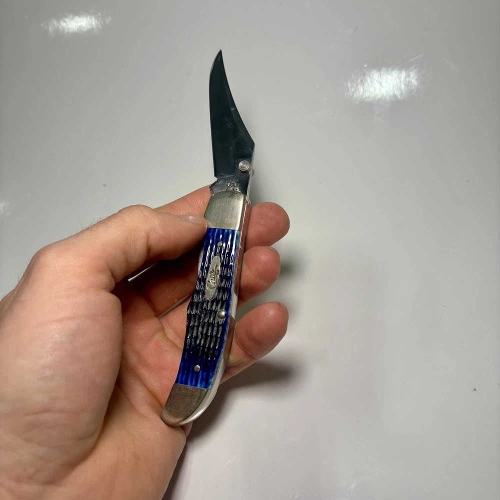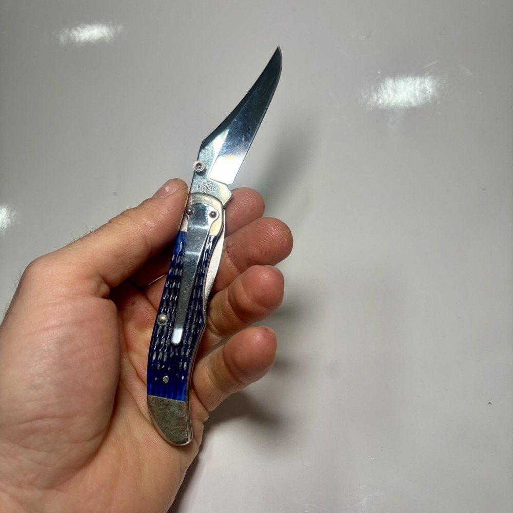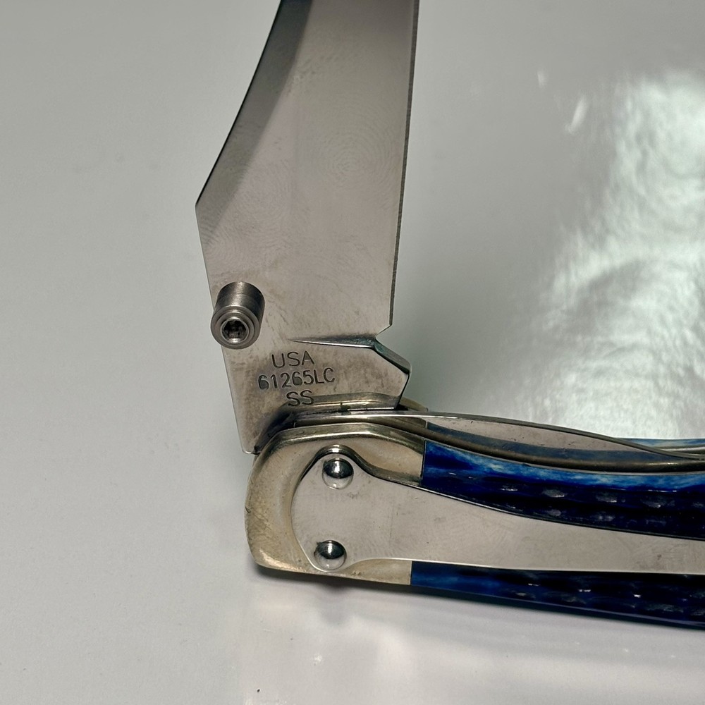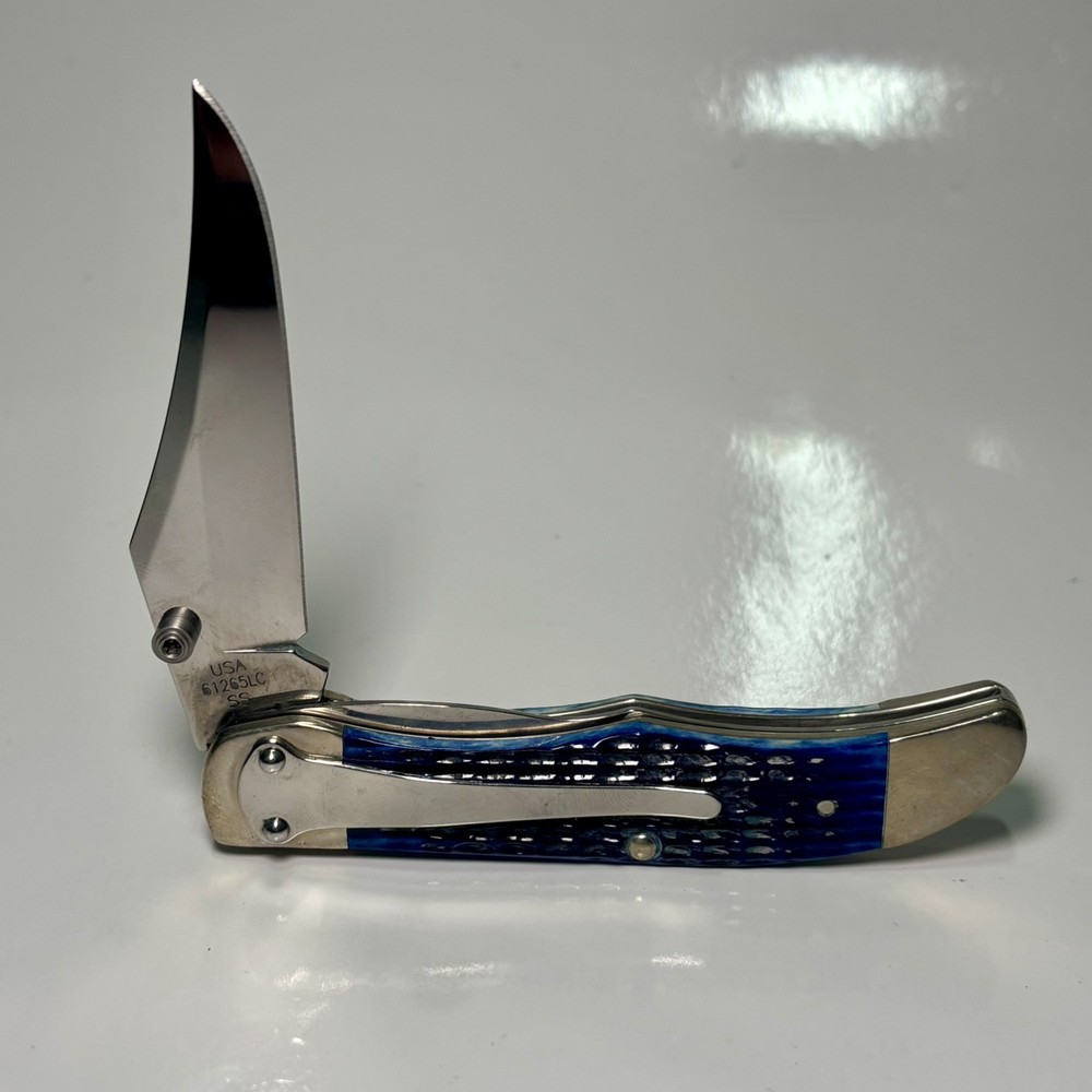 Lock Type: Lockback Blade Range: 2.75 Model: R1265LC Country/Region of Manufacture: United States Number of Blades: 1 Brand: Case Original/Reproduction: Original Opening Mechanism: Manual Handle Material: Bone Type: Pocketknife Blade Type: Clip Point Blade Edge: Plain Color: Blue Blade Material: Stainless Steel
