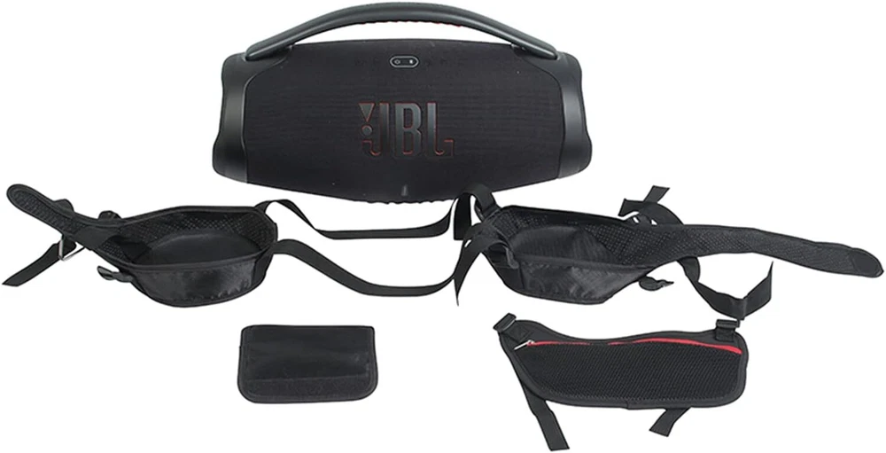 Specially designed for : The portable travel carrying strap case is specially designed for JBL Boombox 3 - Portable Bluetooth Speaker,Boombox 3 Wi-Fi Portable Wireless Speaker and Boombox 2 - Portable Bluetooth Speaker. 5 in 1 design: 1 travel case for boombox,1 charger bag,1 shoulder strap and 2 side mesh covers, 5 in 1 designed to protect Boombox 3,Boombox 3 Wi-Fi and Boombox 2 Portable Bluetooth Speaker from falling,bumping,scratching and damaging. Convenient mesh side cover to take all the accessories : travel carrying strap case for Boombox 3,Boombox 3 Wi-Fi and Boombox 2 Portable Bluetooth Speaker with mesh side cover for taking the charger, cable,phone and other small accessories, one case for all your need. Portable design : send with comfortable adjustable shoulder strap,convenient to carry your Boombox 3,Boombox 3 Wi-Fi or Boombox 2 Portable Bluetooth Speaker or make it a shoulder bag and easy to go swimming, hiking, cycling, travelling, parties,etc. What you will get : 1x 1 travel case for boombox,1 charger bag,1 shoulder strap and 2 side mesh covers.(Boombox 3/Boombox 3 Wi-Fi/Boombox 2 and accessories are not included).