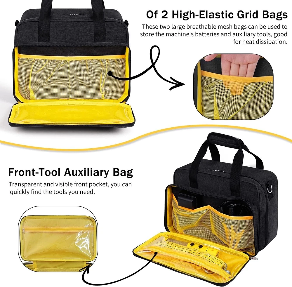 Case Compatible with DEWALT Tire Inflator (DCC020IB), Storage Bag for Car Tire Inflators, Air Compressor Portable Storage Travel Bag Car Air Pump Storage Holder (Bag Only) About this item Perfect Storage: A storage bag designed for DEWALT car tire inflators. Provide sufficient storage space according to the size of the inflator and its accessories. Whether at home or out, the compact size is more convenient for you to carry or store, for you to save more space. Unique Design: The bag has two pockets, the large pocket is mainly used to store the inflator. The front pocket is for storing other accessories, and the internal mesh pocket design can help you better organize your tools. High Quality Material: Soft internal structure can fully protect the inflator, prolong the service life of the equipment.The shell is made of high quality canvas material, which is strong and durable. Easy to Carry: Classic zipper design, easy to open and close. The case has a comfortable hand strap and adjustable shoulder strap so you can easily take it anywhere, making it perfect for carrying on the go. Tips: Only bags, no tools and accessories, the picture is for demonstration only. If you are not satisfied with your purchase, please contact us and we will give you a satisfactory answer.