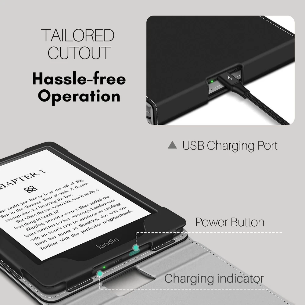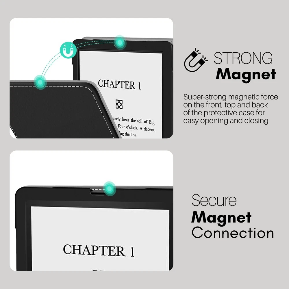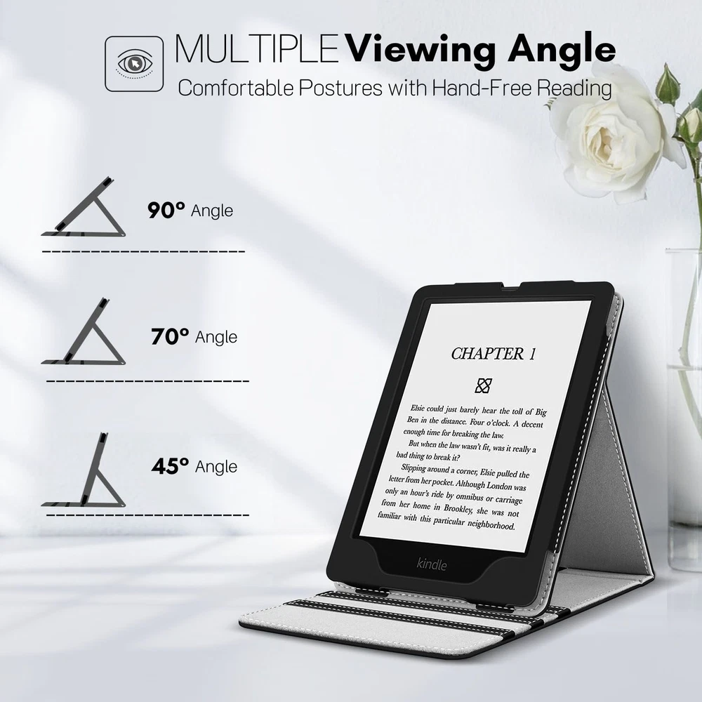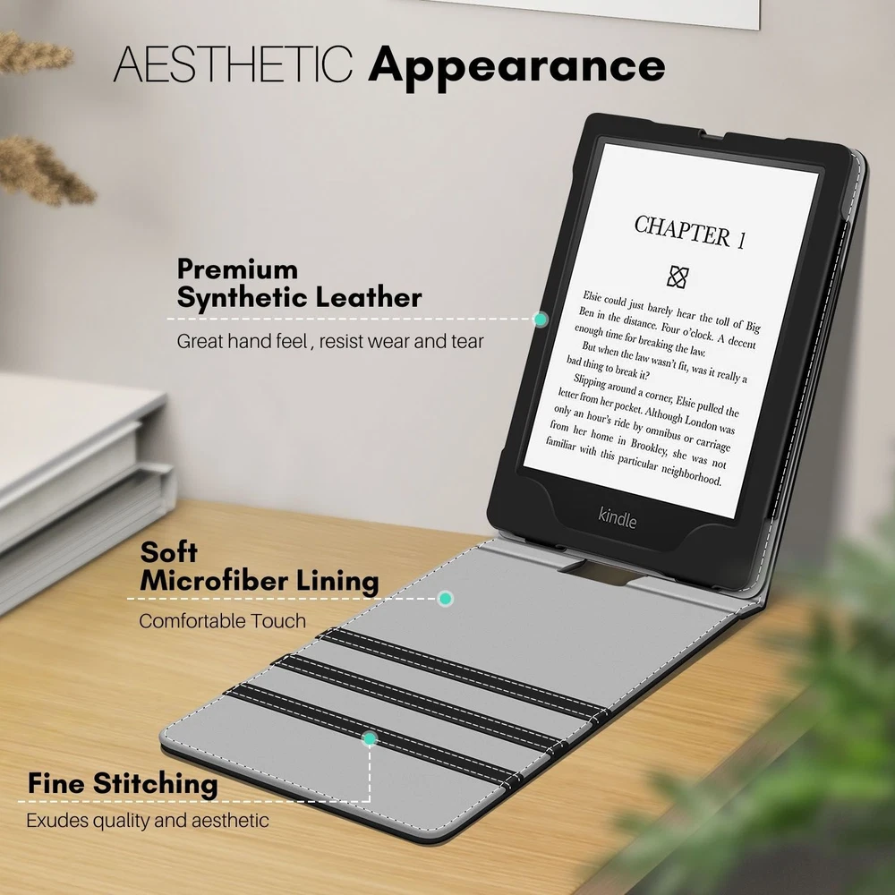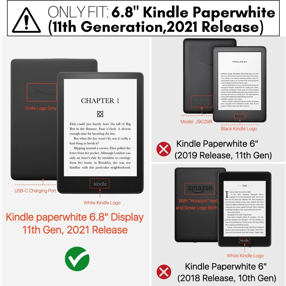 Case Covers for Kindle Paperwhite Cover 11th Generation-2021 / Signature Edition 6.8 Inch eReader with Foldable Stand, Vertical Flip Origami Paper White Cover, Premium PU Leather, Black Case Covers for Kindle Paperwhite Cover 11th Generation-2021 / Signature Edition 6.8 Inch eReader with Foldable Stand, Vertical Flip Origami Paper White Cover, Premium PU Leather, Black Introduction: Slim, form-fitting cover to perfectly fit your Kindle Paperwhite (11th Generation) and provide full front and back protection. The cover is easy to securely attach and remove, and folds back for easy one-handed reading. It automatically puts your Kindle to sleep when closed and wakes upon opening, making it easy to jump back into your book. Made of durable synthetic leather, this case is designed to be lightweight and protective, protect your device without adding unnecessary bulk, so you can hold it for hours of reading with minimal effort. With the nylon woven interior, the cover protects your Kindle and keeps the screen clean without adding bulk, making it perfect for taking your Kindle wherever you go. Feature: Designed For Kindle Paperwhite 2021 - Perfect fit for Amazon All-New 6.8" Kindle Paperwhite and Kindle Paperwhite Signature Edition E-Reader (11th Generation - 2021 Release). Will not fit older generation Kindle models Vertical Flip Stand Design - Makes reading more convenient and provides three adjustable standing heights. The vertical orientation/flip makes it so you can read it hands free sitting at a table, in bed, and anywhere without straining your neck Premium PU Leather - Adds comfort and an additional layer of protection for the kindle paperwhite 2021 case; with a magnetic connection Automatically wakes or puts your device to sleep when the lid is opened and closed; Cover folds back for easy one-handed reading All-Around Protection - Corner drop impact resistant safeguarding your device beyond normal wear and tear; protect your device from bumps, dust, damage, scratches Ultra slim lightweight protective hardback with premium quality synthetic leather; Micro fiber suede interior lining to protect your device from scuffs and scratches and adds an additional layer of protection and comfort Variety of Designs to Choose From - Various colors and styles for you to choose; Precise cut out and openings for button controls and charge port. Device can be charged with case closed Specification: Note: Case is ONLY compatible with Amazon Kindle Paperwhite (11th Generation, 2021 Release), will not fit the regular (non-Paperwhite) Kindle E-reader and other Kindle model Package Content: 1x Case Covers for Kindle Paperwhite Cover 11th Generation-2021 / Signature Edition 6.8 Inch eReader