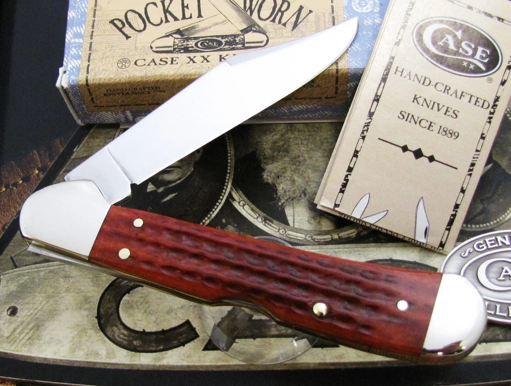 Hi I'm James Parker and I am offering some fine Case knives for auction from a recent all Case Knife Collection acquisition. The winning bidder pays $6.95 for USPS Ground Advantage Shipping with Delivery Confirmation included in the Shipping price. Condition is important, and if you have ever bought from us, you know we deliver what we say. Please be sure to see the shiny pins and bolsters and when we say mint.....we mean it. We don't mean "Never Used But Beat Up And Shopworn". This knife for auction is a 2000 issue Case 111 Shield Red Pocket Worn Copperlock, 4 1/4" closed, featuring Case's "Corncob" Jigged Pocket Worn finished Old Red Bone (cattle bone) handle s and the nickel silver Case 111 shield . If you don't know what I am referring to about the Case 111 shield, here's the story: this unique Case 111 shield was placed into the frames of a very few of the standard production Case knives in 2000. The knives with this Case 111 shield were SECRETLY inserted in random standard Case factory boxes and shipped out from the Case factory. It was near impossible to get any knife with this Case 111 shield as for instance with this Case Copperlock pattern: Beginning in 2000, this Case Red Pocket Worn Copperlock was built in a quantity of 100 pieces with this 111 shield. Then in 2001 the Case Amber Bone Copperlock was built in a quantity of 100 pieces with a 112 shield - because 2001 marked the 112th year of the Case trademark in manufacturing cutlery. The significance of the number 111 is that Case began manufacturing knives in 1889 and the year 2000 marked the 111th year of the beginnings of the Case trademark in manufacturing cutlery. Please be sure to see all 4 of the Supersize Photos as this is the EXACT knife the winning bidder will receive. The Case item number is #00790. This MEGA RARE 2000 issue Case 111 Shield Red Pocket Worn Copperlock , issued in a quantity of 100 pieces, is in mint condition in the original issue Case Pocket Worn factory box with the original older style Case factory paperwork brochure and is being offered at No Reserve. Yes A True No Reserve Auction Where The Bidding Starts At .99 Cents. Thanks for your bids, we appreciate it.