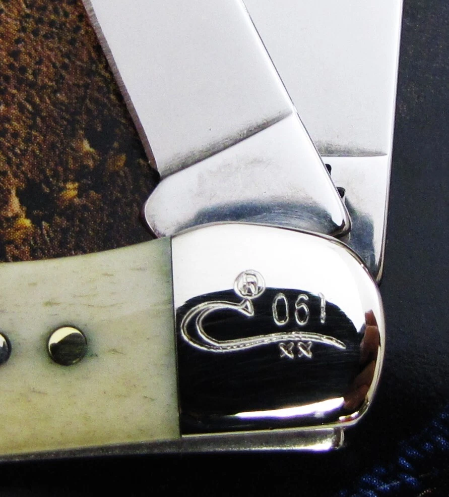Hi I'm James Parker and I am offering some fine knives for auction from a Case Knife Collection acquisition. The winning bidder pays $5.95 for USPS Ground Advantage Shipping with Delivery Confirmation included in the Shipping price. Condition is important, and if you have ever bought from us, you know we deliver what we say. Please be sure to see the shiny pins and bolsters and when we say mint.....we mean it. We don't mean "Never Used But Beat Up And Shopworn". This knife for auction is a 2002 issue Case American Set Pocket Hunter, 2 3/4" closed, featuring Case's Smooth Natural Bone (cattle bone) handles and the nickel silver U.S.A. Bar shield. This Case American Set Pocket Hunter features the official Case Long Tail C serialization and #061 on the front side pocket end bolster. Please see the 3rd photo for a good close up shadowed view of the serialization. The master Clip blade is stamped on the front tang with Case XX with 5 X's and 3 Dots, dating this as a 2002 issue Case knife, while the rear tang of this blade is pattern stamped with USA T.H. 62165 SS. Both blade have good "walk and talk" snap. The "T.H." in the pattern stamp recognizes the late Tommy Hart. Tommy Hart passed away in 1998 and he was instrumental in designing the famous Case Texas Lockhorn pattern, along with Case's Copperlock, Russlock, and this Pocket Hunter. Please be sure to see all 5 of the Supersize Photos as this is the EXACT knife the winning bidder will receive. We will provide to the winning bidder a brand new condition unlabeled Case factory box for safe storage, as this knife didn't originally come in any type of individual box. This spectacular 2002 issue Case American Set Pocket Hunter - Serial #061 , issued in a quantity of 350 pieces, is in mint condition with a copy of the Case American Set Certificate Of Authenticity and is being offered at No Reserve. Yes A True No Reserve Auction Where The Bidding Starts At .99 Cents. Thanks for your bids, we appreciate it.