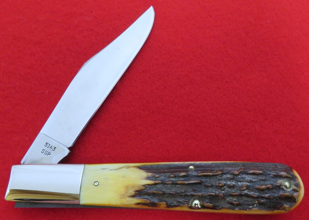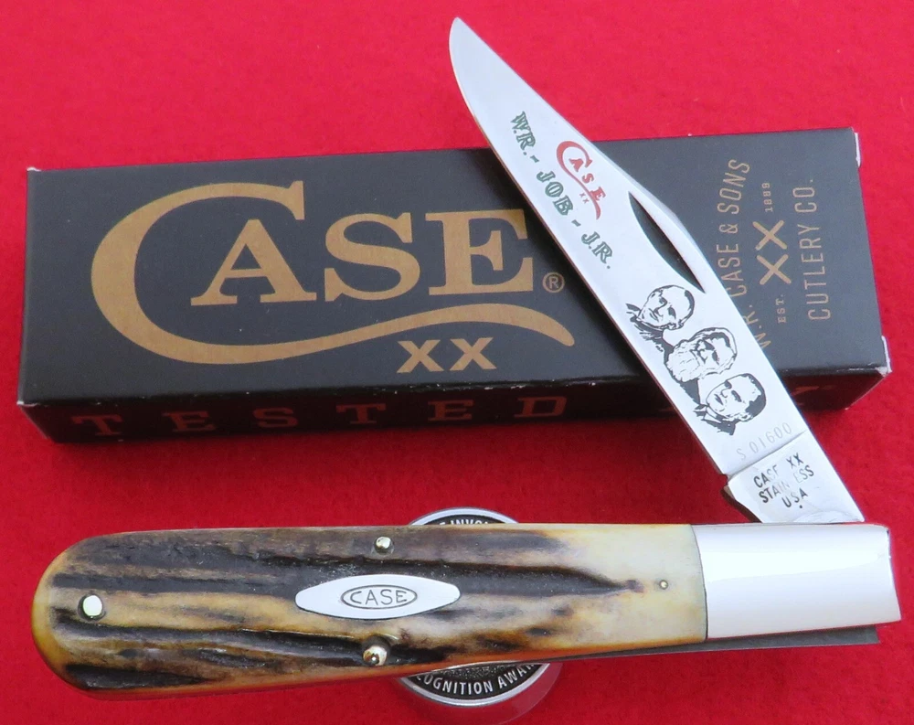 Hi I'm James Parker and I am offering some Case Stag Knives for auction from an all Case Stag acquisition out of Pennsylvania. The winning bidder pays $5.95 for USPS Ground Advantage Mail Shipping with Delivery Confirmation included in the Shipping price. This knife for auction is a magnificent 1979 issue Case Stag Founder's Knife , 5" closed, with an incredible pair of beautiful flame torched Genuine Stag (deer stag) handles and nickel silver bolsters. The Clip blade has a GREAT 3 color factory deep etch reading "Case XX W.R. - Job - J.R." and detailed likenesses of W.R., Job, and J.R. "Russ" Case. This Case Stag Founders Knife is serial numbered on the front tang of the Clip blade with "S 01600". The front tang of the Clip blade is stamped with Case XX Stainless USA with 1 Dot, with the rear tang being pattern stamped with 5143 SSP. The Clip blade opens up nice and has great "walk and talk" snap. Please be sure to see all of the Supersize Photos as this is the EXACT knife the winning bidder will receive. We will ship the knife in a new unlabeled Case factory box as shown in the last photo. Original Case Certification paper is included with this knife. This awesome 1979 issue Case Stag Founder's Knife is in mint condition with the original Case COA paperwork and is being offered at No Reserve. Thanks for your bids, we appreciate it.