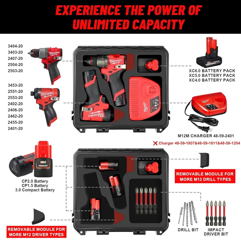 ???????????? ????????: ???????? ????????. ?????? ???????????? ???????????? & ?????????? ?????? & ?????????????????????? ?????? ????????????????, ???????????? ?????? ?????? ?????????????????????????? ???????????????? ????????. [Hard Case for Milwaukee Power Tools & Battery & Charger] : For Milwaukee tools case is designed for Milwaukee M12 Impact Drill: 2401-20, 2407-20, 2503-20, 2504-20, 2504-21, 2505-20, 2515-20, 3404-20, 3403-20, 3497-22; Impact Driver: 2401-20, 2402-20, 2406-20, 2455-20, 2462-20, 2467-20, 2505-20, 2551-20, 2553-20, 3453-20; XC5.0/4.0/3.0/2.0/1.5 Battery Pack: 48-11-2401, 48-11-2402, 48-11-2420, 48-11-2425, 48-11-2430, 48-11-2440, 48-11-2450, 48-11-2460; Chager: 48-59-2401, 48-59-1808 and etc Case for Milwaukee M12 Impact Driver&Drill Set -Waterproof Tool Box w/Removable ???????????? ????????: ???????? ????????. ?????? ???????????? ???????????? & ?????????? ?????? & ?????????????????????? ?????? ????????????????, ???????????? ?????? ?????? ?????????????????????????? ???????????????? ????????. [Hard Case for Milwaukee Power Tools & Battery & Charger] : For Milwaukee tools case is designed for Milwaukee M12 Impact Drill: 2401-20, 2407-20, 2503-20, 2504-20, 2504-21, 2505-20, 2515-20, 3404-20, 3403-20, 3497-22; Impact Driver: 2401-20, 2402-20, 2406-20, 2455-20, 2462-20, 2467-20, 2505-20, 2551-20, 2553-20, 3453-20; XC5.0/4.0/3.0/2.0/1.5 Battery Pack: 48-11-2401, 48-11-2402, 48-11-2420, 48-11-2425, 48-11-2430, 48-11-2440, 48-11-2450, 48-11-2460; Chager: 48-59-2401, 48-59-1808 and etc [Precision Custom Interior Design for Milwaukee Tools]: The case features a custom interior tailored specifically for Milwaukee drills, impact drivers, batteries, and chargers. The removable foam inserts can be adjusted to fit different models snugly, ensuring your tools remain securely in place during transport, protecting them from scratches and wear [Sturdy Carrying Design for Milwaukee]: This hard case is designed with a durable and secure lock latch system, ensuring safely for Milwaukee tools. The comfortable and stable handle makes it convenient to carry your tools to job sites [Versatile Application Case]: Whether you're a professional contractor, electrician, or a DIY enthusiast, this hard case is designed to meet your needs. It's ideal for transporting and storing for Milwaukee drills, impact drivers, batteries, and chargers on busy job sites, in workshops, or during home renovation projects. The case's durable construction and secure lock latch make it perfect for protecting your tools during travel, ensuring they are ready for use in any setting [High-Quality Material Case for Milwaukee]: Constructed from durable polypropylene, this hard case offers excellent protection against impacts, dust, and moisture. The rugged PP material ensures for Milwaukee tools remain safe and secure, providing long-lasting performance in any environment ???????????? ????????: ???????? ????????. ?????? ???????????? ???????????? & ?????????? ?????? & ?????????????????????? ?????? ????????????????, ???????????? ?????? ?????? ?????????????????????????? ???????????????? ????????. [Hard Case for Milwaukee Power Tools & Battery & Charger] : For Milwaukee tools case is designed for Milwaukee M12 Impact Drill: 2401-20, 2407-20, 2503-20, 2504-20, 2504-21, 2505-20, 2515-20, 3404-20, 3403-20, 3497-22; Impact Driver: 2401-20, 2402-20, 2406-20, 2455-20, 2462-20, 2467-20, 2505-20, 2551-20, 2553-20, 3453-20; XC5.0/4.0/3.0/2.0/1.5 Battery Pack: 48-11-2401, 48-11-2402, 48-11-2420, 48-11-2425, 48-11-2430, 48-11-2440, 48-11-2450, 48-11-2460; Chager: 48-59-2401, 48-59-1808 and etc [Precision Custom Interior Design for Milwaukee Tools]: The case features a custom interior tailored specifically for Milwaukee drills, impact drivers, batteries, and chargers. The removable foam inserts can be adjusted to fit different models snugly, ensuring your tools remain securely in place during transport, protecting them from scratches and wear [Sturdy Carrying Design for Milwaukee]: This hard case is designed with a durable and secure lock latch system, ensuring safely for Milwaukee tools. The comfortable and stable handle makes it convenient to carry your tools to job sites [Versatile Application Case]: Whether you're a professional contractor, electrician, or a DIY enthusiast, this hard case is designed to meet your needs. It's ideal for transporting and storing for Milwaukee drills, impact drivers, batteries, and chargers on busy job sites, in workshops, or during home renovation projects. The case's durable construction and secure lock latch make it perfect for protecting your tools during travel, ensuring they are ready for use in any setting [High-Quality Material Case for Milwaukee]: Constructed from durable polypropylene, this hard case offers excellent protection against impacts, dust, and moisture. The rugged PP material ensures for Milwaukee tools remain safe and secure, providing long-lasting performance in any environment Item Specifics Type Tool Boxes Brand LOTOCASE About us Dear buyer, Thank you for visiting my store! Our warehouses are located in many regions around the United States. According to the customer's delivery address. Use USPS/UPS/DHL logistics transportation service. Prioritize the best quality logistics solutions to transport packages. Ensure package delivery time, At the same time. Have any after-sales problems, Feel free to contact us. At your service Payment PayPal is our preferred method of payments it's the quickest, easiest and most secure way to pay for your goods or services online. PayPal offers buyer and seller protection should there be a problem. If you do not have a PayPal account, to get started and buy your first item with us is very easy. Simply click on the 'Buy It Now' button and follow the eBay checkout steps. Select PayPal as the payment method you then will be given the chance to enter your card details in to PayPal's secure checkout in order to pay for your order. Shipping 1. Your purchase