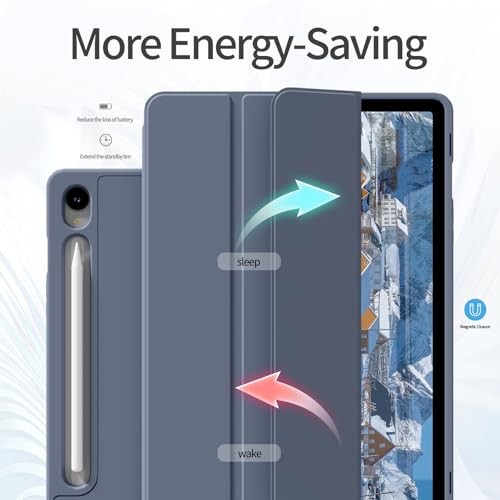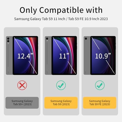 Case for Samsung Galaxy Tab S9 FE 10.9 Inch/Tab S9 11 Inch with S Pen Holder & K Compatible exclusively with Samsung Galaxy Tab S9 FE 10.9 Inch (Models: SM-X510/X516B/X518U) and Galaxy Tab S9 11 Inch (Models: SM-X710/X716B/X718U). Includes a dedicated S Pen holder with support for magnetic wireless charging (S Pen not included). Constructed with a durable PU leather exterior and soft TPU back for comprehensive protection against scratches and bumps. Features auto wake/sleep function with built-in magnets for energy efficiency. Front cover folds into two standing positions for comfortable viewing and typing angles.