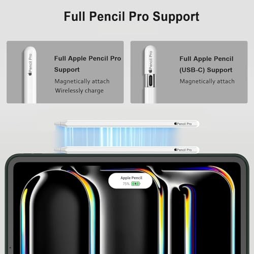 Case for iPad Pro 13 Inch (M5/M4) 2024/2025 with Kickstand & Pencil Holder Compatible with iPad Pro 13 inch (M5) 2025 (A3360, A3361, A3362) and iPad Pro 13 inch (M4) 2024 (A2925, A2926, A3007); check model number on the device bottom. Supports Pencil Pro and Pencil (USB-C) with a magnetic charging side groove and secure magnetic clasp. Features auto wake/sleep function with a powerful magnet for easy on/off and secure closure. Constructed with PU exterior, microfiber lining, and soft TPU back for full protection against shocks, drops, and scratches. Offers dual standing positions for adjustable viewing angles.