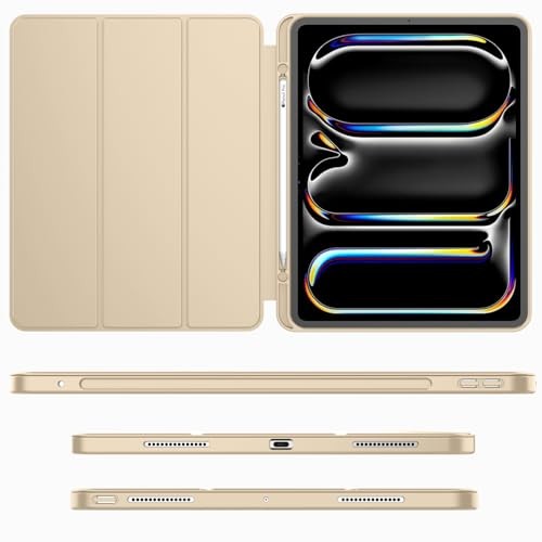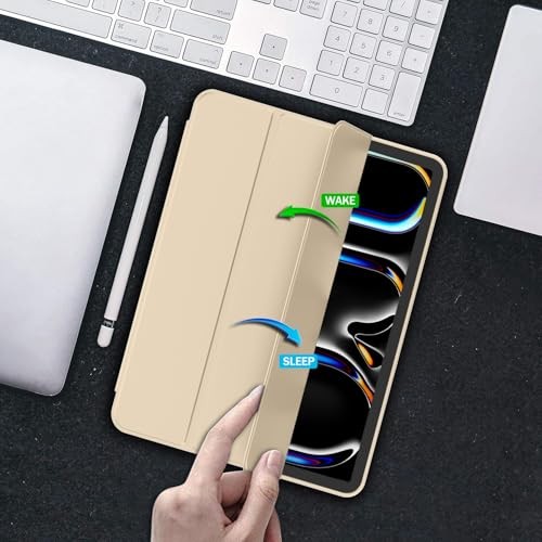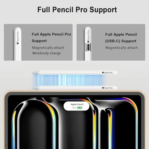 Case for iPad Pro 13 Inch M5/M4 2024/2025 with Pencil Holder & Trifold Stand Compatible with iPad Pro 13 inch (M5) 2025 (A3360, A3361, A3362) and iPad Pro 13 inch (M4) 2024 (A2925, A2926, A3007); check model number on the device bottom. Supports Pencil Pro and Pencil (USB-C) with a magnetic charging side groove and secure magnetic clasp. Features auto wake/sleep function with a powerful magnet for easy on/off and secure closure. Constructed with PU exterior, microfiber lining, and soft TPU back for full protection against shocks, drops, and scratches. Offers dual standing positions for adjustable viewing angles.
