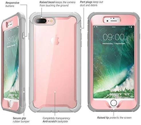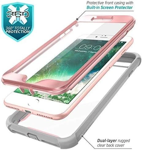 Case for iPhone 8 Plus/iPhone 7 Plus, [Ares] Full-Body Rugged Clear Bumper Case with Built-in Screen Protector (Pink) Full-body case with 360 degree protection, a drop-resistant TPU bumper wraps around the entirety of your device. Certified 20 ft drop tested by CNET(Centre National d'Études des Télécommunications).,Built-in screen protector prevents scratches and scrapes without comprising on touch-sensitivity.,Clear back plate built not to add too much bulk, Certified 20 ft drop tested by CNET(Centre National d'Études des Télécommunications),Corners of case provide augmented drop protection for accidental drops and falls.,Compatible with Apple iPhone 8 Plus / Apple iPhone 7 Plus. NOT FOR Apple iPhone X.