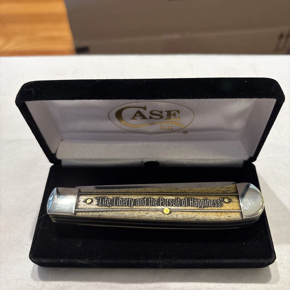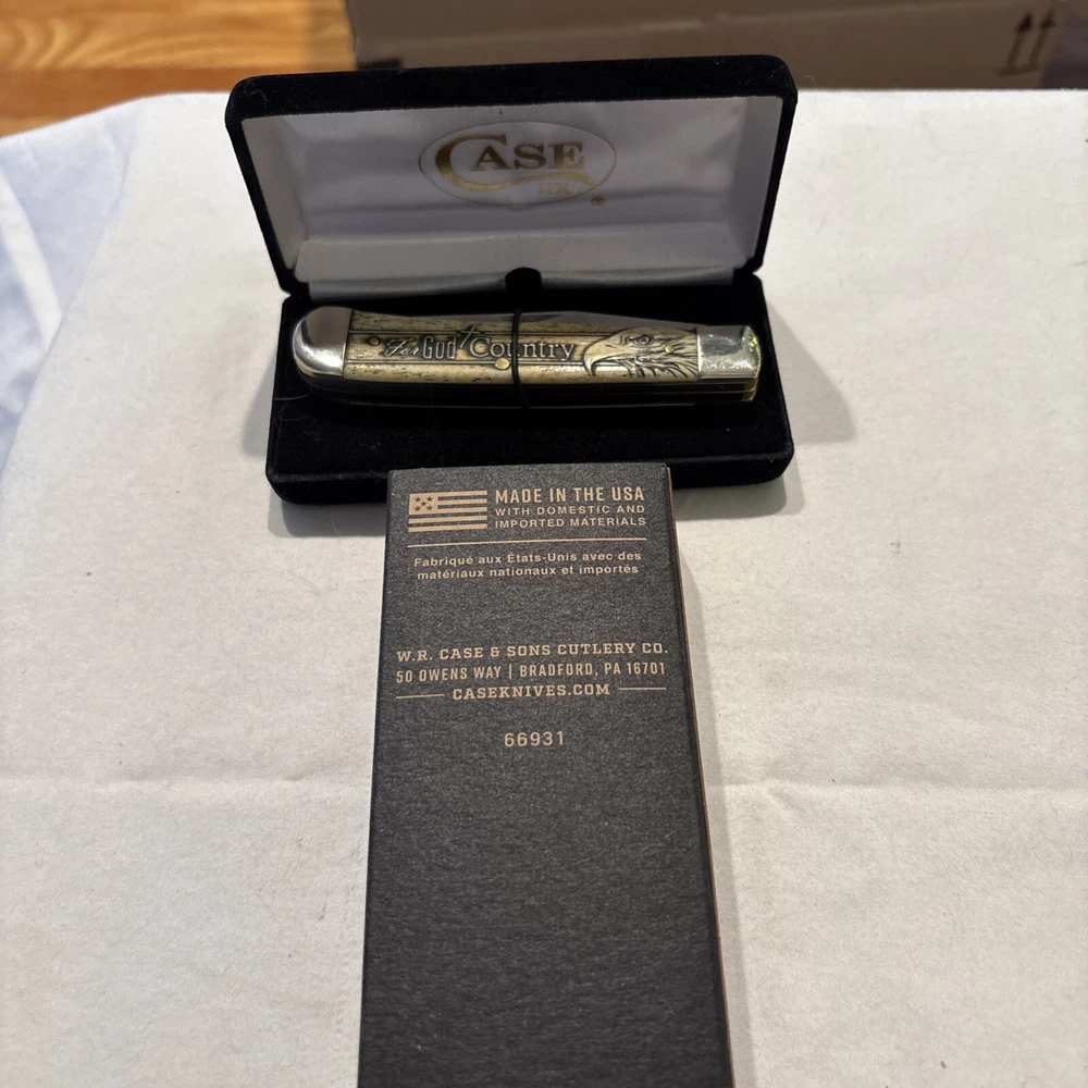 This folding knife by Case features a unique design with an emblem of "For God's Country". The knife is perfect for collectors or anyone who appreciates a well-crafted piece. The brand of the knife is Case and it falls under the categories of Collectibles, Knives, Swords & Blades, and Collectible Folding Knives. The knife is modern and factory manufactured, making it a great addition to any collection.